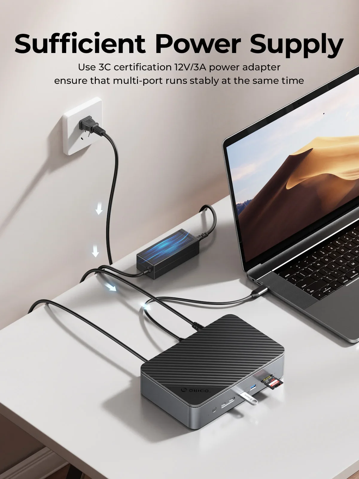 충분한 POWER LOGIC 공급 장치, 사용3C 인증 12V/3A POWER LOGIC 어댑터멀티 포트가 동시에 안정적으로 실행되는지 확인하십시오.