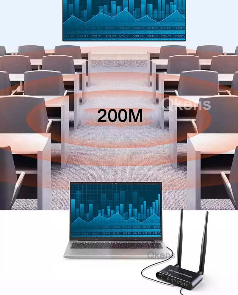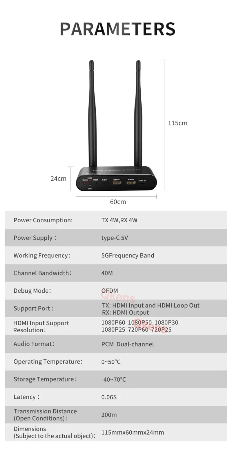 이 무선 확장기는 내장된 무선 전송 프로토콜을 통해 HDMI 오디오 비디오 신호를 전송합니다.