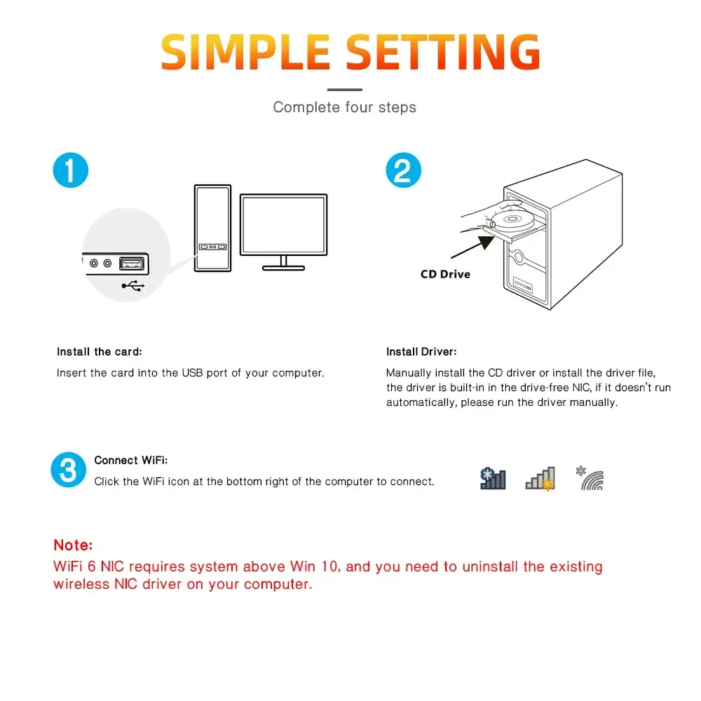 • 장거리 USB 2.0 무선 네트워크 카드:장거리 USB 2.0 무선 네트워크 카드로 최대 10 미터 떨어진 곳에서 무선 네트워크에 연결하십시오.