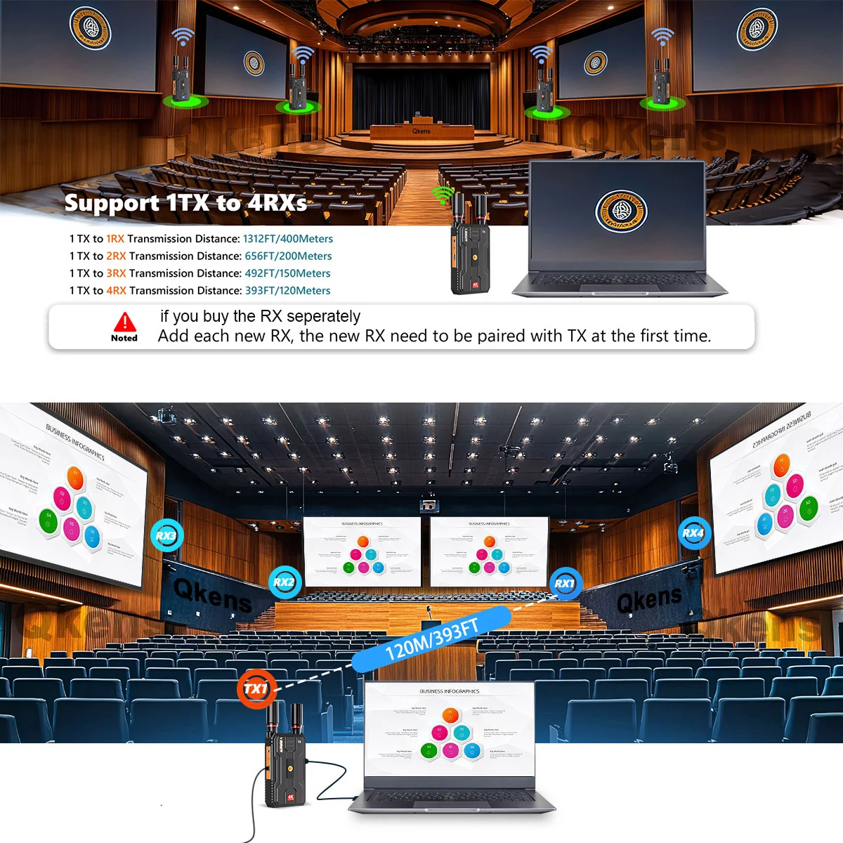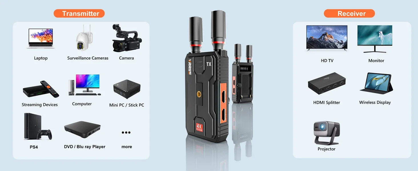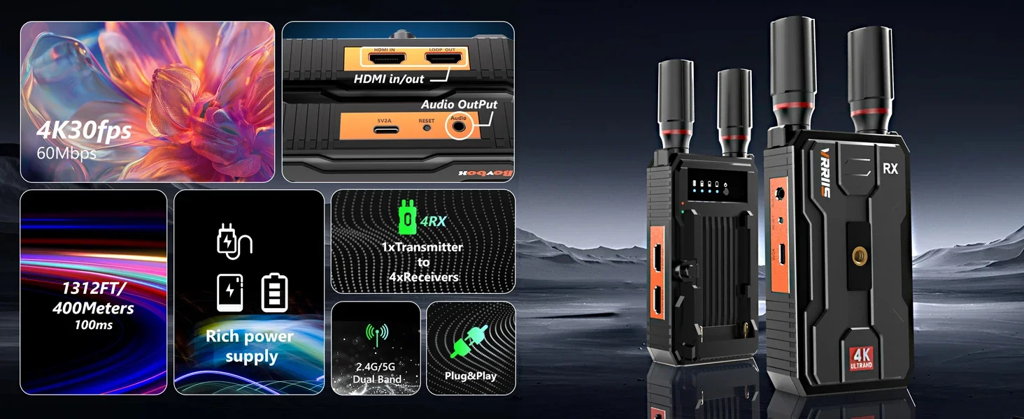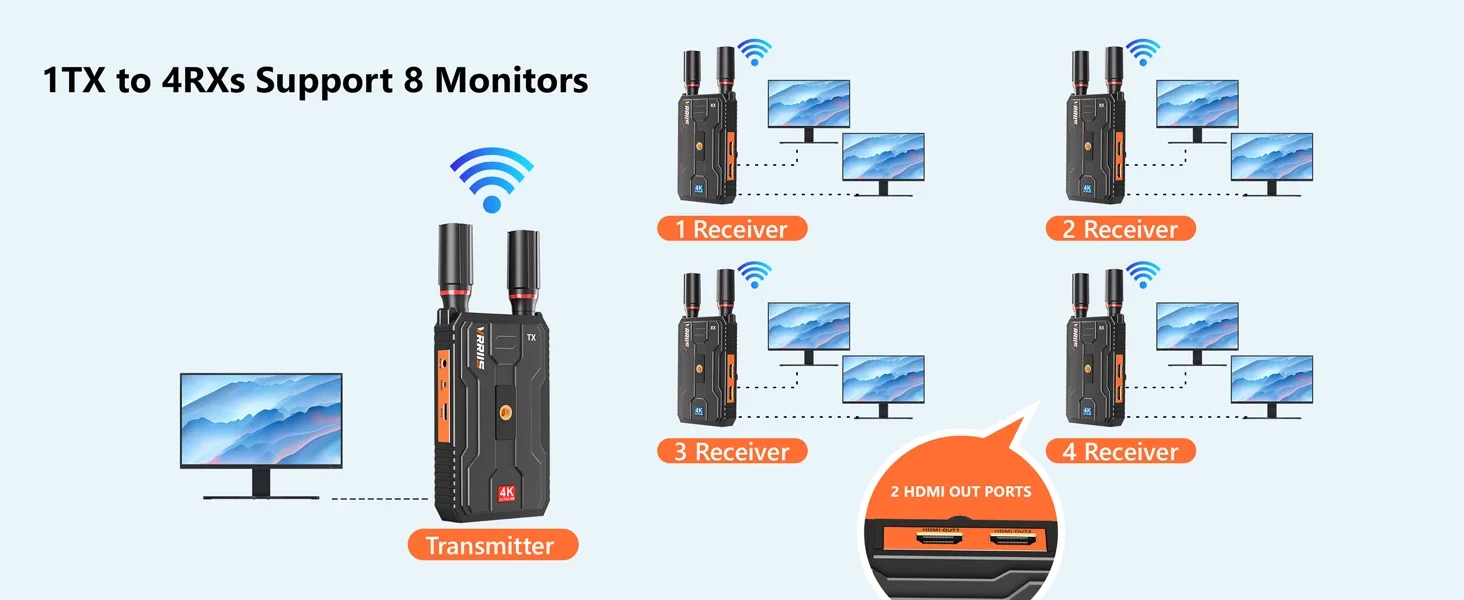 Enhanced with 4K transmission, one transmitterand can match up to four receivers.