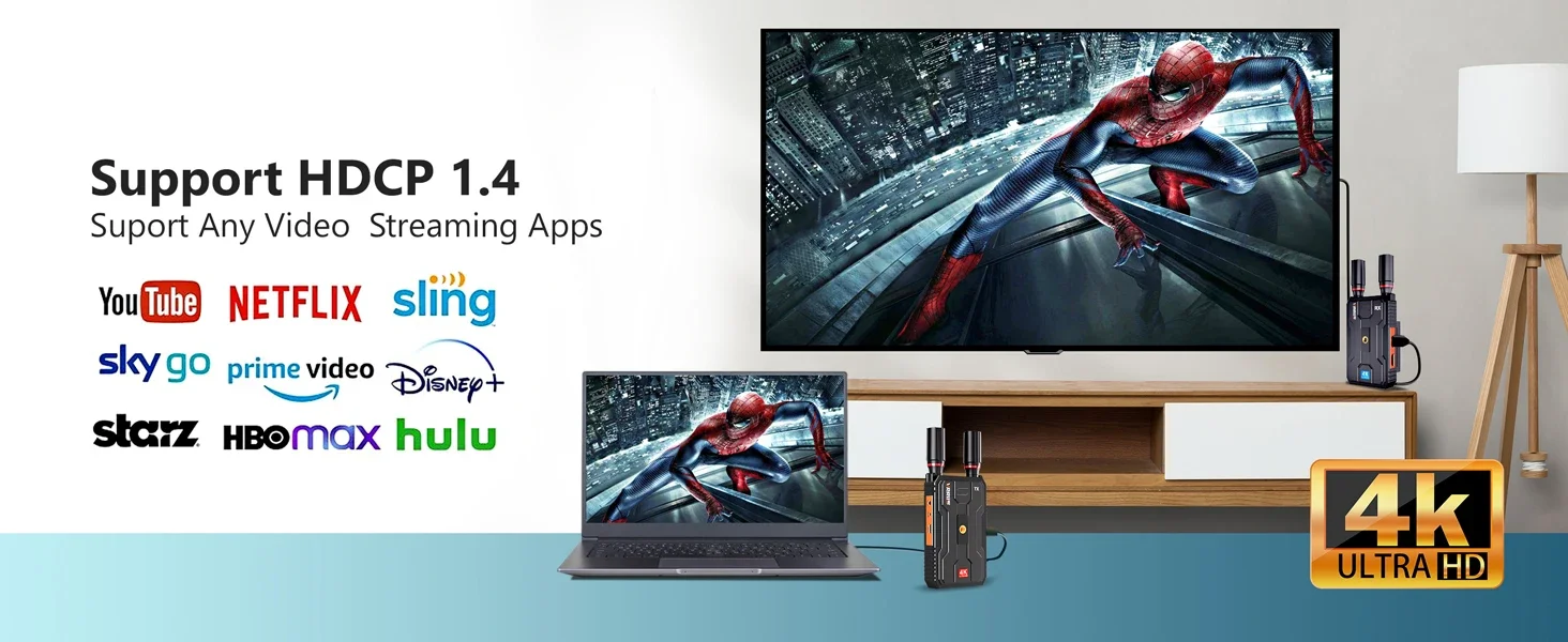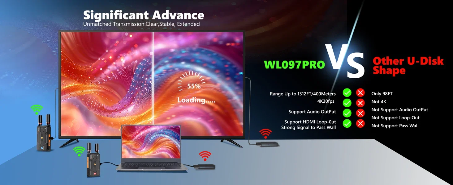 This WL097 Pro 4K WIRELESS HDMI TRANSMITTER AND RECEIVER caneasily project the screen of