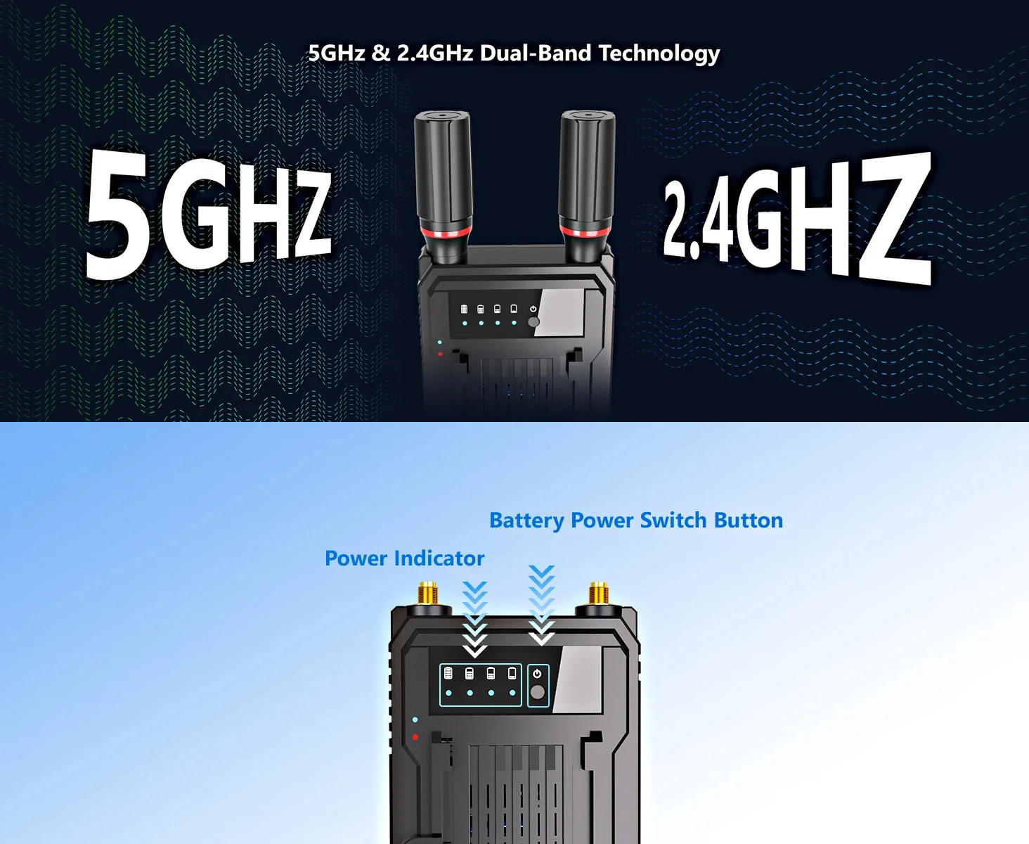 The transmission channel automatically matches between 2.4Gand 5G frequency.