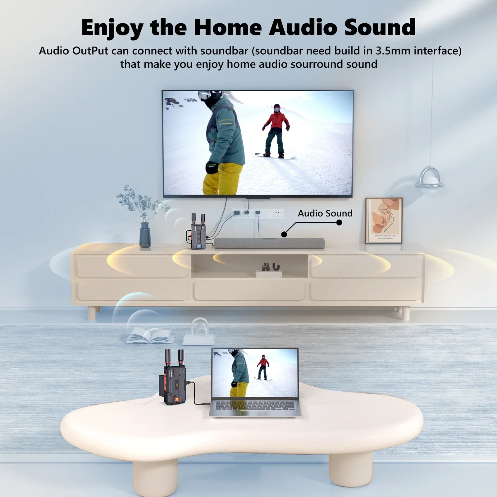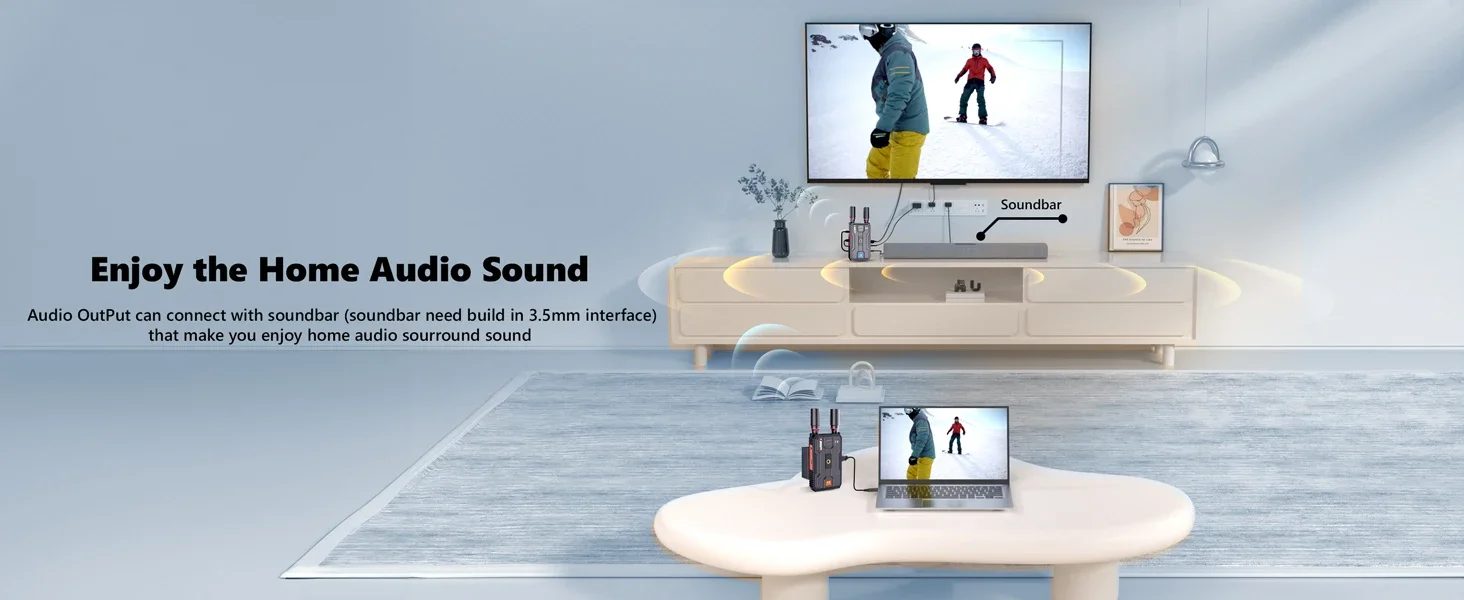 Designed with 3.5mm separate audio transmission jack on the transmitter.