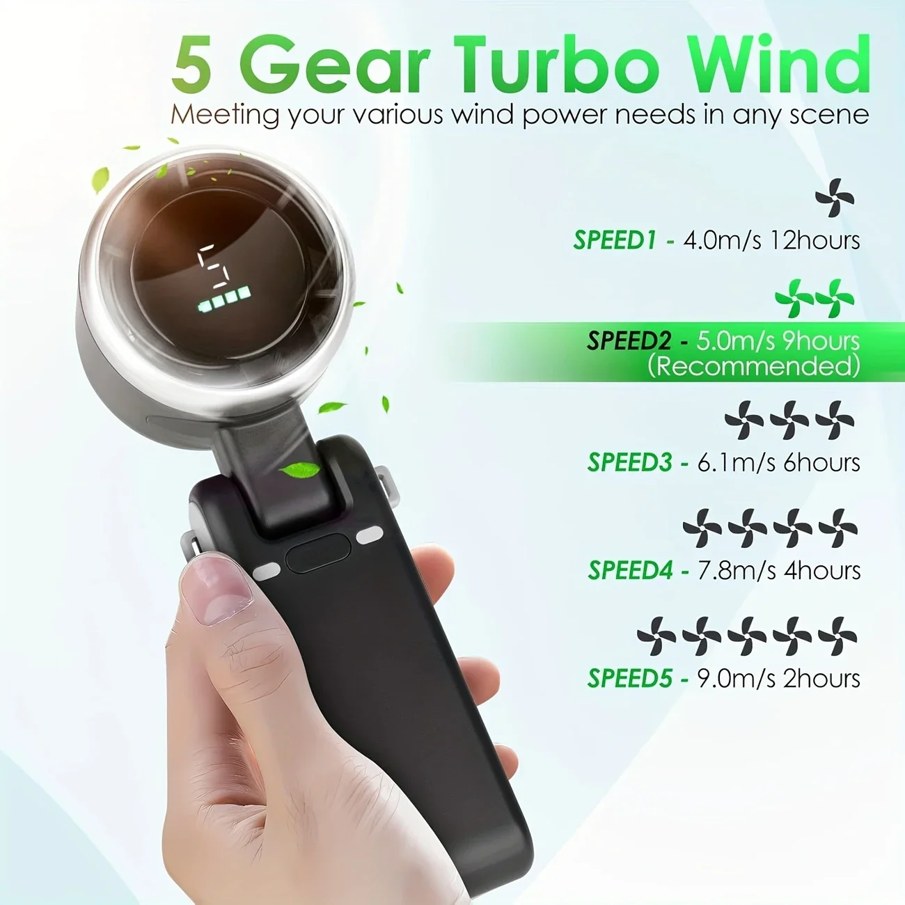 C형 충전식: 팬은 TypeC를 통해 충전됩니다. 한 번 충전으로 몇 시간 동안 연속 사용이 가능하므로 장거리 여행이나 야외 모험에 이상적입니다.