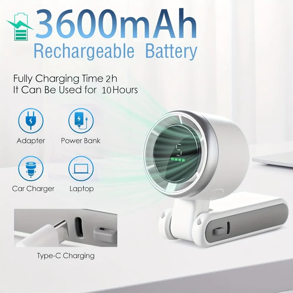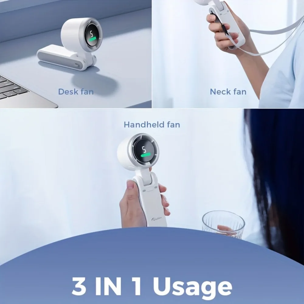 다기능 디자인: 휴대용 선풍기로 사용하거나, 포함된 USB 베이스를 이용해 책상 위에 놓거나, 목에 걸면 핸즈프리 냉각이 가능합니다.가볍고 인체공학적인 디자인으로 어떤 상황에서도 쉽게 휴대하고 사용할 수 있습니다.