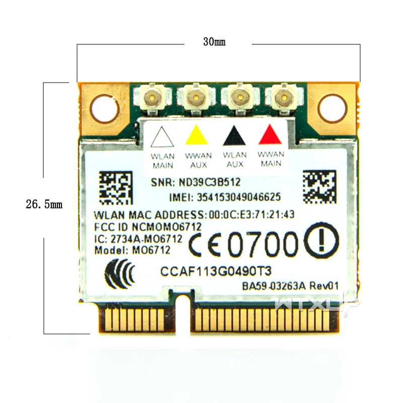 모델:GTM671W / MO6712 바이오스: 표준/공개 버전 (모든 브랜드 노트북에 적합, HP/Lenovo 포함 없음) 장치 유형:미니 PCI익스프레스 지원 시스템:GPRS (2G), EDGE, UMTS(3G), HSDPA, HSUPA, GSM 부품:1X 3G 및 와이파이 카드 (1X MO6712) |