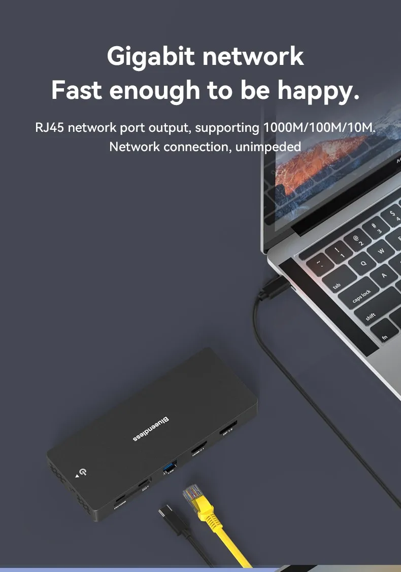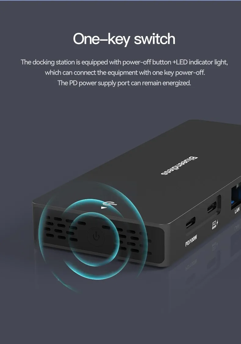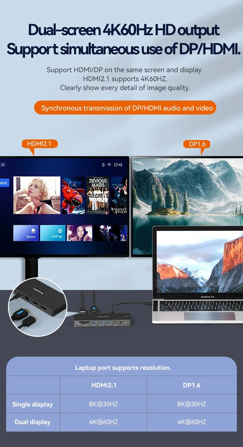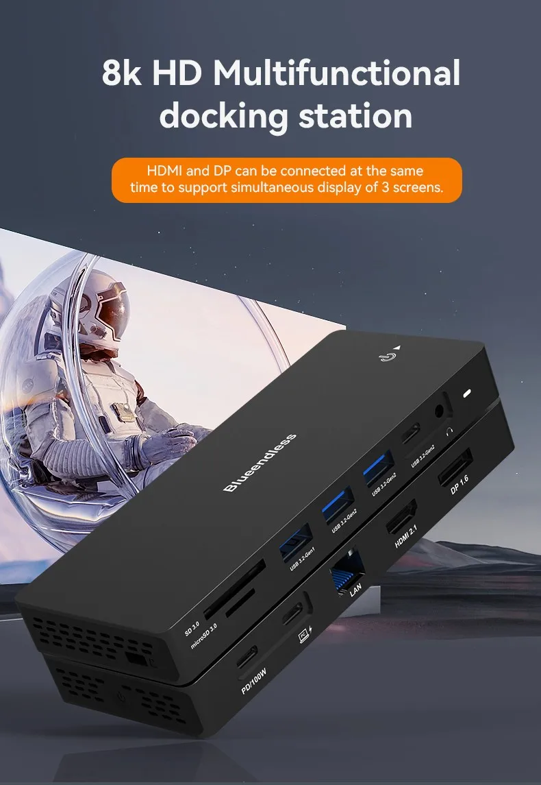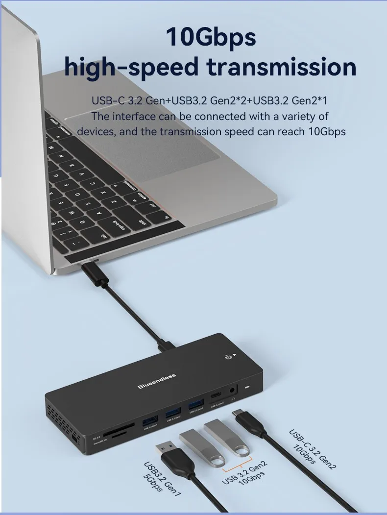 | HD1208 | 2*HDTV+2*USB-A 10Gbps+USB-A 5Gbps+USB-C 10Gbps+Lan+Audio+SD/TF+PD |