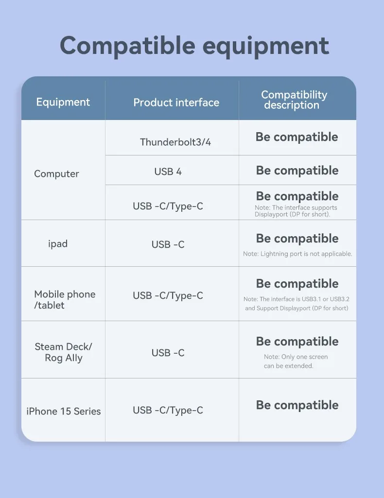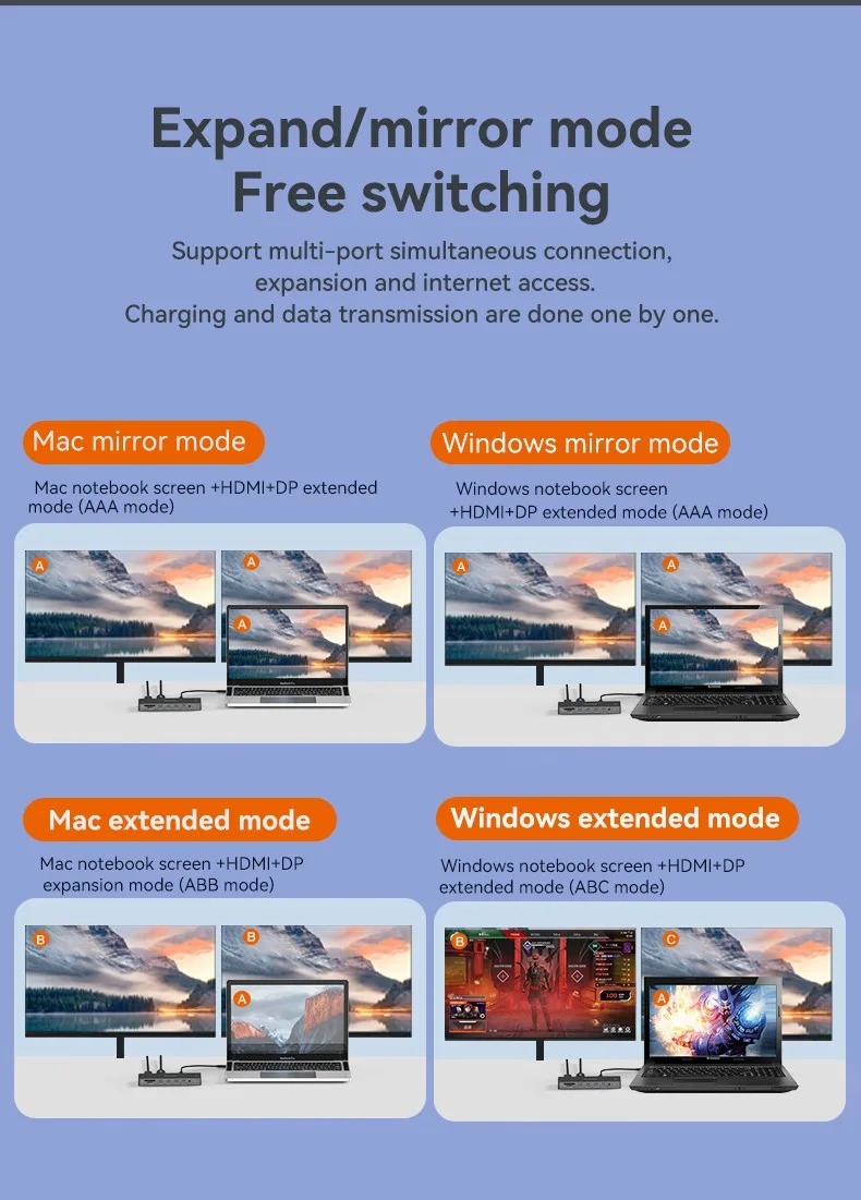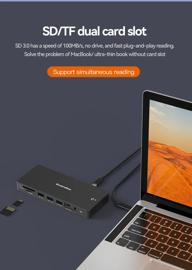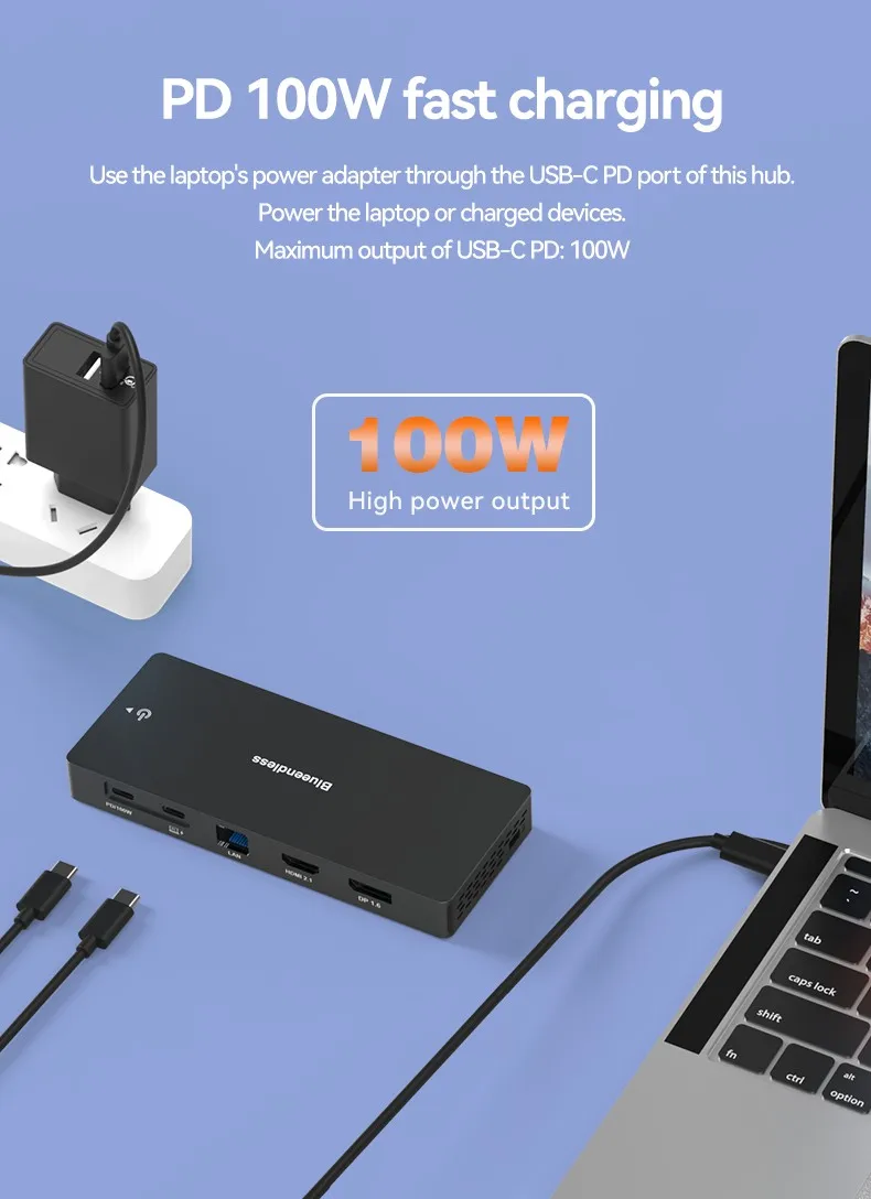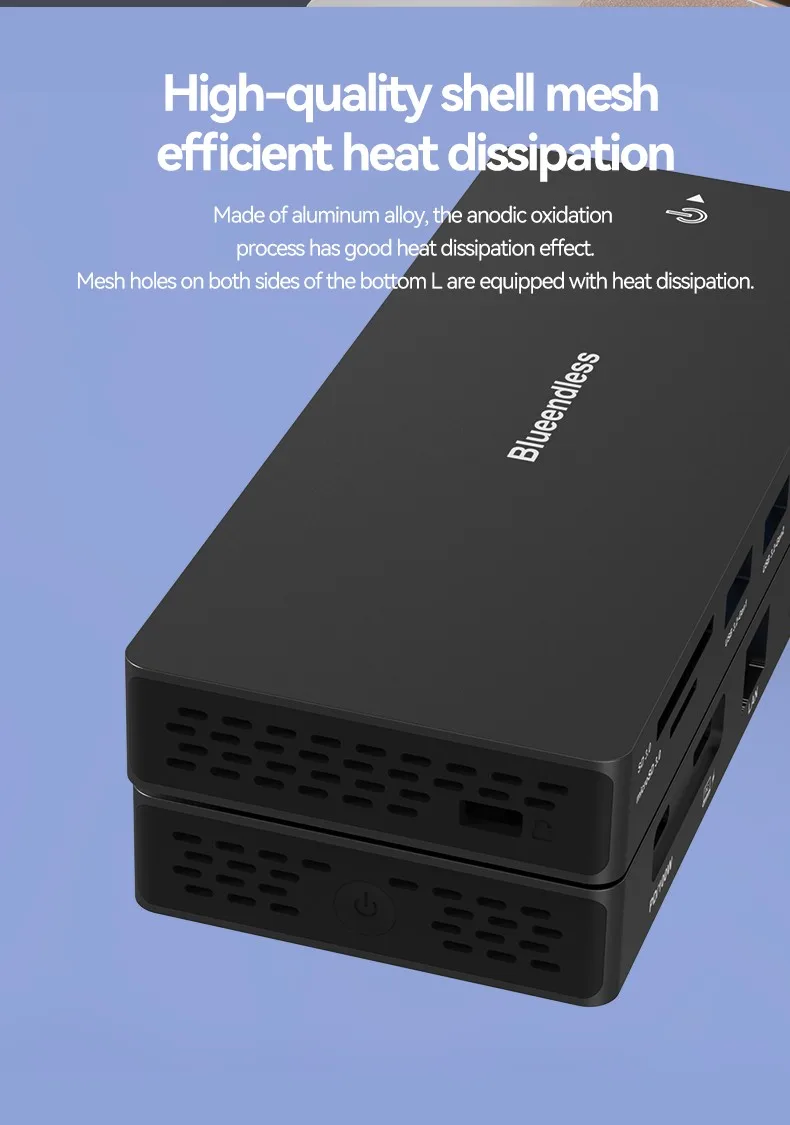 | HD1208 | 2*HDTV+2*USB-A 10Gbps+USB-A 5Gbps+USB-C 10Gbps+Lan+Audio+SD/TF+PD |