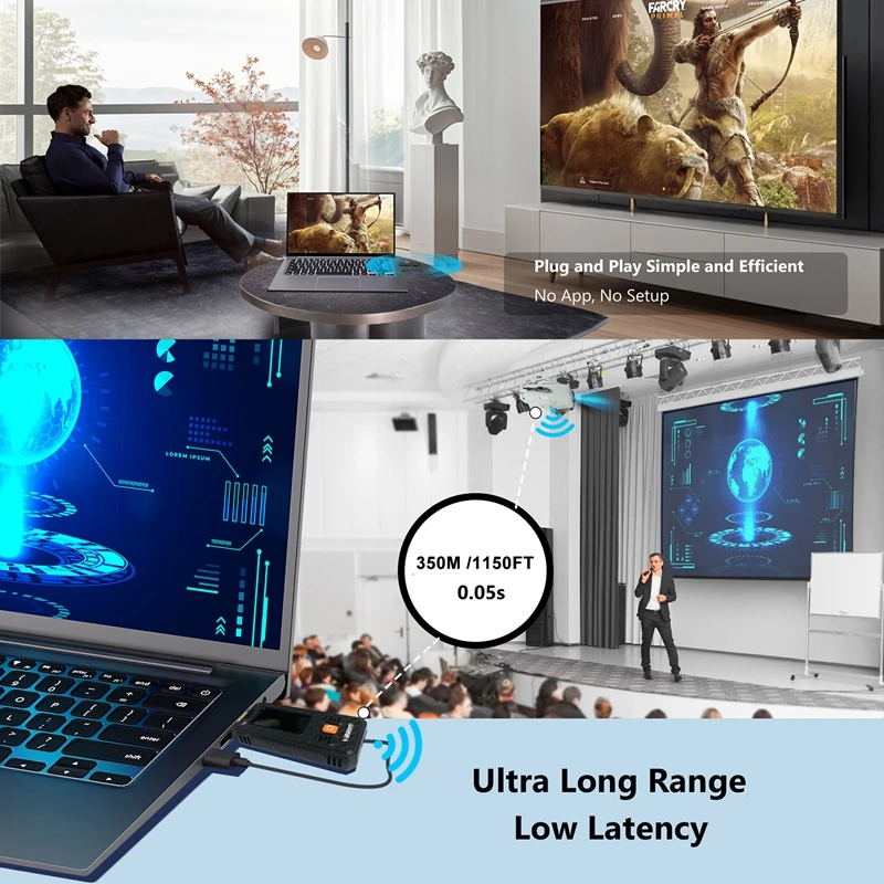 HDMI 케이블 전송 거리 제한을 깨고 복잡한 케이블이나 전선 설치가 필요하지 않습니다.