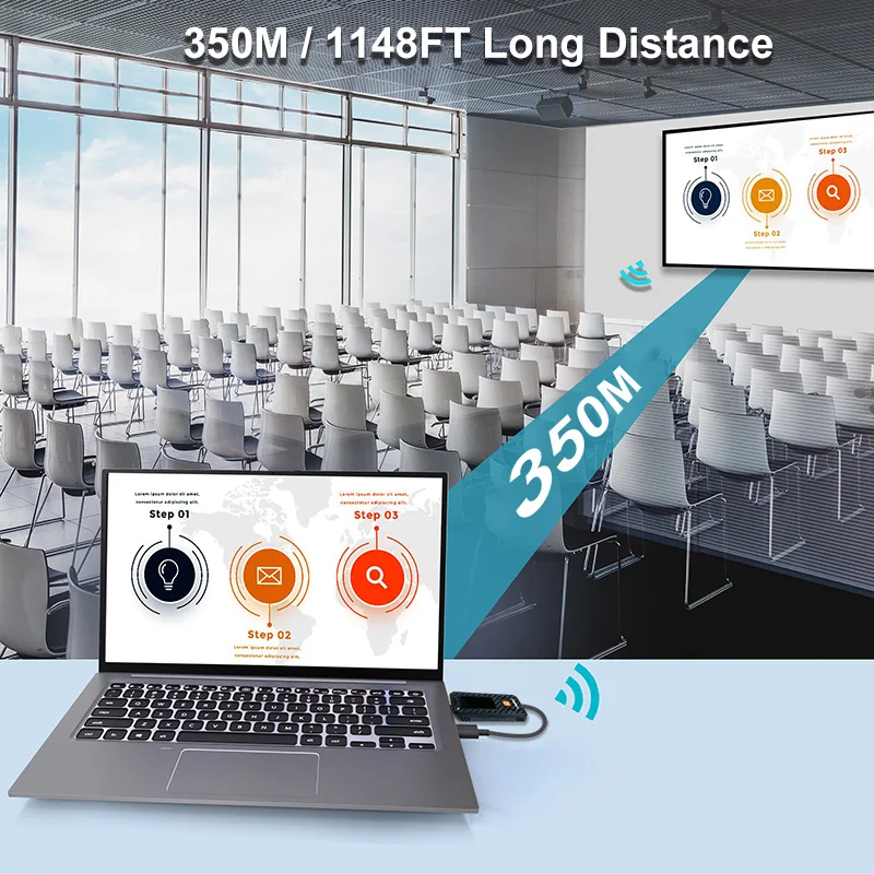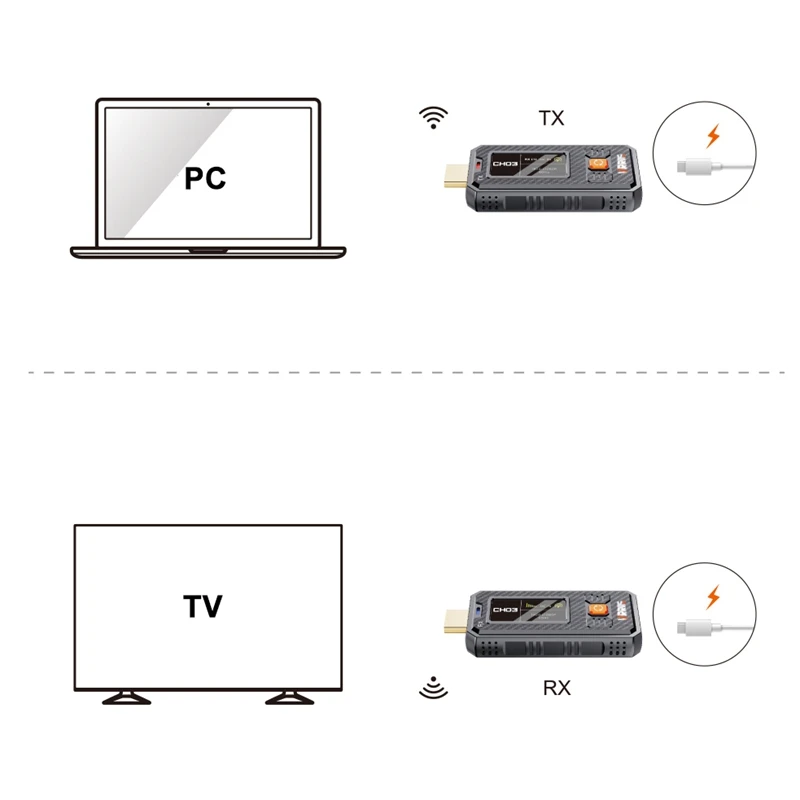 이 무선 확장기는 내장된 무선 전송 프로토콜을 통해 HDMI 오디오 비디오 신호를 전송합니다.