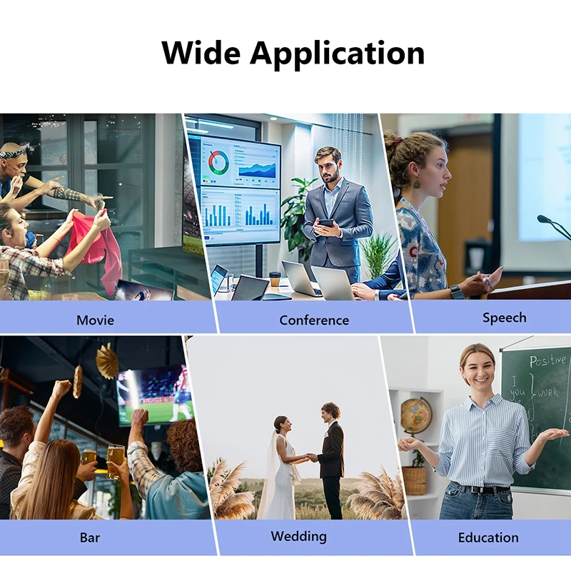 대형 화면 화상 회의/홈 엔터테인먼트/온라인 학습/비즈니스 연설에 널리 사용됩니다.