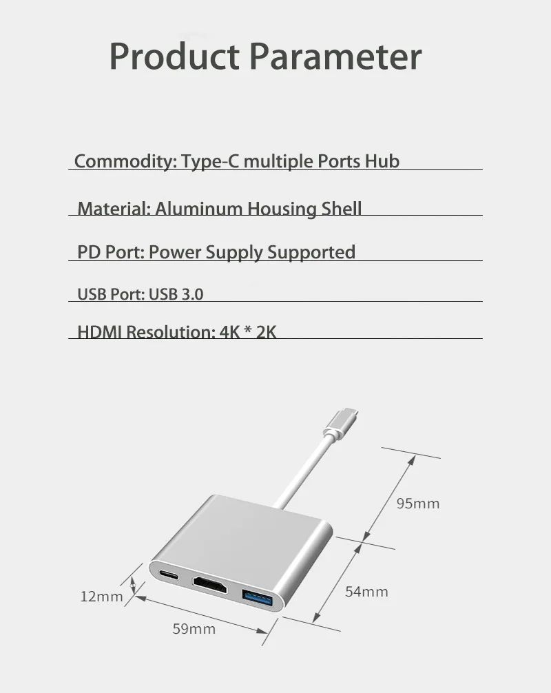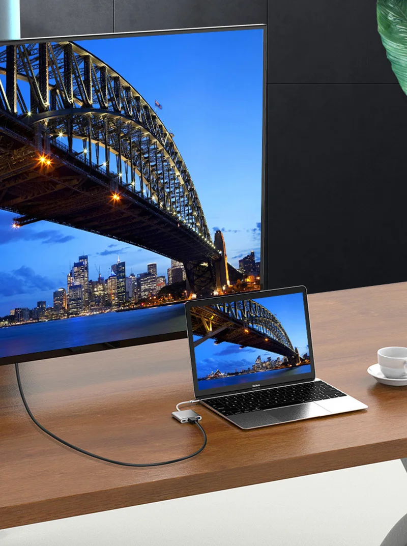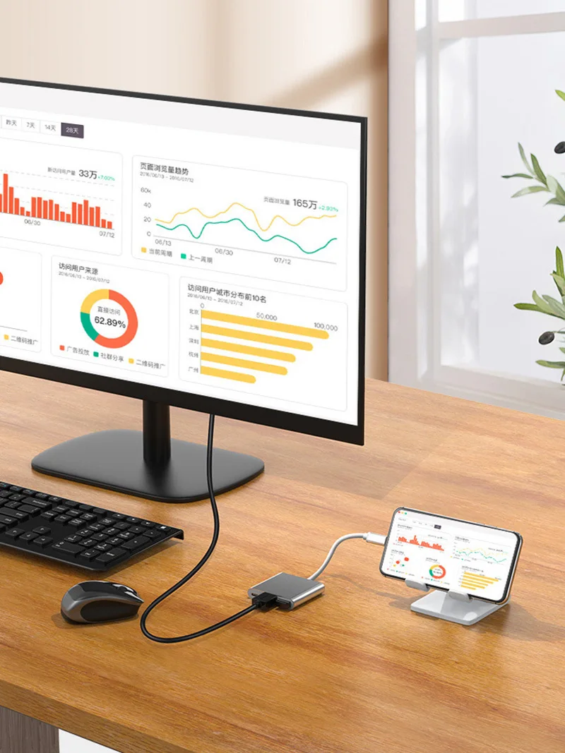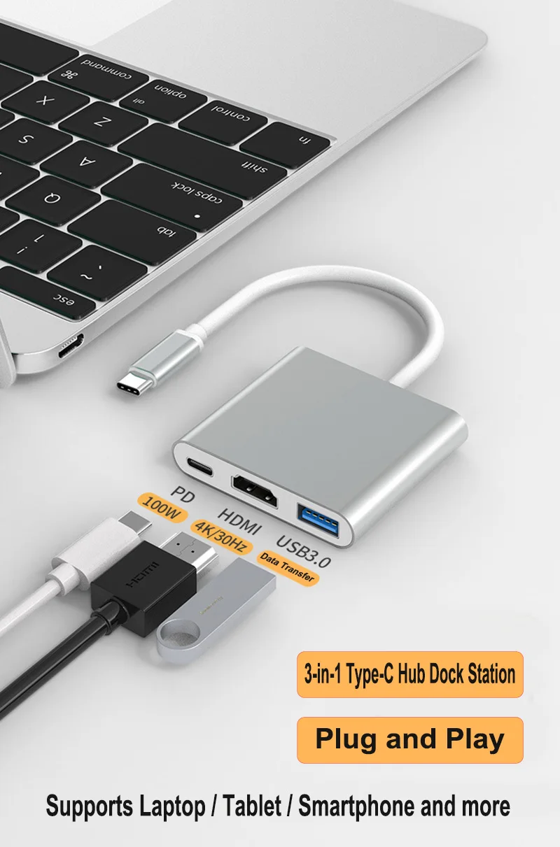 3.용도포트 확장: USBC 옵션이 제한된 장치에 더 많은 포트를 추가하여 다양한 주변 장치에 대한 유연성을 제공합니다.비디오 출력: 확장된 화면 공간이나 미러링을 위해 HDMI 포트를 사용하여 외부 디스플레이에 연결합니다.데이터 전송: USB 3.0 포트를 사용하면 외부 저장 장치에 연결하여 빠른 파일 전송이 가능합니다.사용 중 충전: USBC PD 충전 포트는 다른 기능을 사용하는 동안 장치에 전원이 공급되도록 보장합니다.4.적합한 시나리오작업 환경: 회의나 프레젠테이션 중에 노트북을 프로젝터나 외부 모니터에 연결합니다.홈 엔터테인먼트: 비디오 스트리밍이나 게임을 위해 태블릿이나 스마트폰을 TV에 연결합니다.여행 및 이동 중: 작고 휴대가 간편하여 여행 중에 추가 포트가 필요한 사용자에게 훌륭한 솔루션입니다.데이터 백업 및 전송: 백업 또는 파일 전송을 위해 USB 드라이브 또는 외장 하드 드라이브에 있는 데이터에 빠르게 액세스합니다.