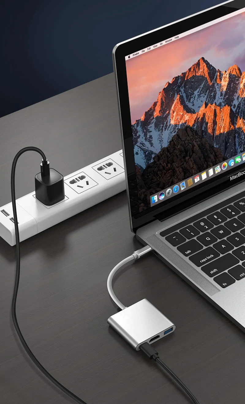 USBC 입력 포트:이는 맥북제품 호환, Windows 노트북, 태블릿 또는 스마트폰과 같은 USBC 포트가 있는 장치에 연결되는 기본 연결입니다.USBC 기능: 양면 삽입 가능(양방향 삽입 가능), 빠른 데이터 전송, POWER LOGIC 공급 및 데이터 전송 모두 지원. 3개의 확장 포트(어댑터 본체의 포트): USBC 암 포트기능: 연결된 장치 충전(USBC POWER LOGIC 공급 지원) 또는 데이터 전송에 사용됩니다.특징: 다른 기능을 동시에 사용하면서 충전이 가능하며, 더 빠른 충전을 위해 더 높은 전력 출력을 지원합니다. HDMI 포트(중간)기능: 외부 모니터, TV 또는 프로젝터에 비디오 출력을 허용합니다.특징: 4K 비디오 출력을 지원하므로 프리젠테이션, 화상 회의 또는 디스플레이 확장에 이상적입니다. USBA 포트기능: 마우스, 키보드, USB 플래시 드라이브 또는 외장 하드 드라이브와 같은 표준 USB 장치를 연결하는 데 사용됩니다.특징: 빠른 데이터 전송 속도(최대 5Gbps)를 제공하고 USB 2.0 장치와 역호환되는 USB 3.0 포트입니다.