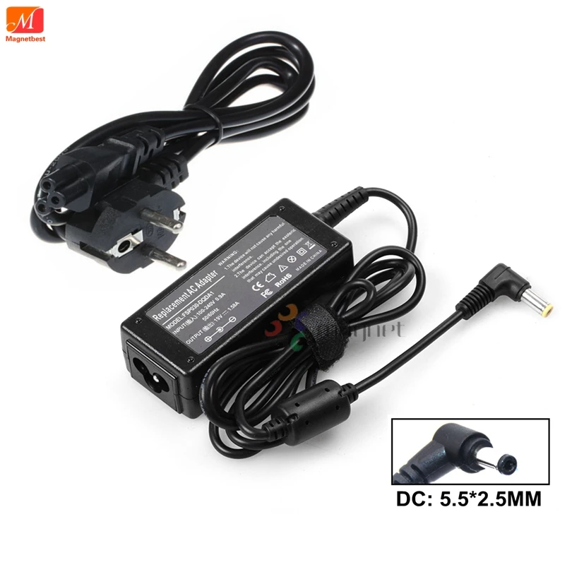 도시바 호환 호환 미니 노트북 용 노트북 충전기 19V 1.58A NB200 NB305 NB500 NB520 AC DC POWER LOGIC 어댑터 충전기 5.5x2.5mm AC 케이블