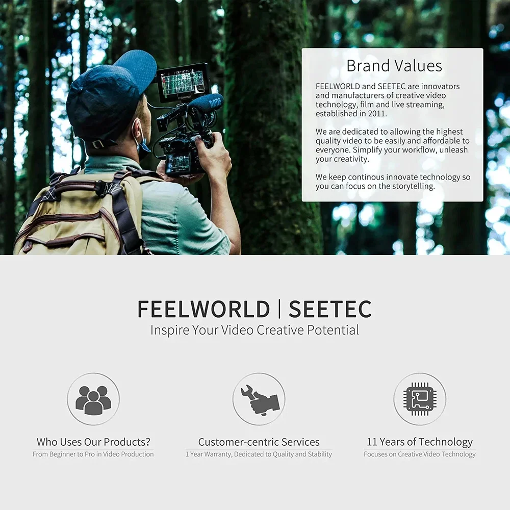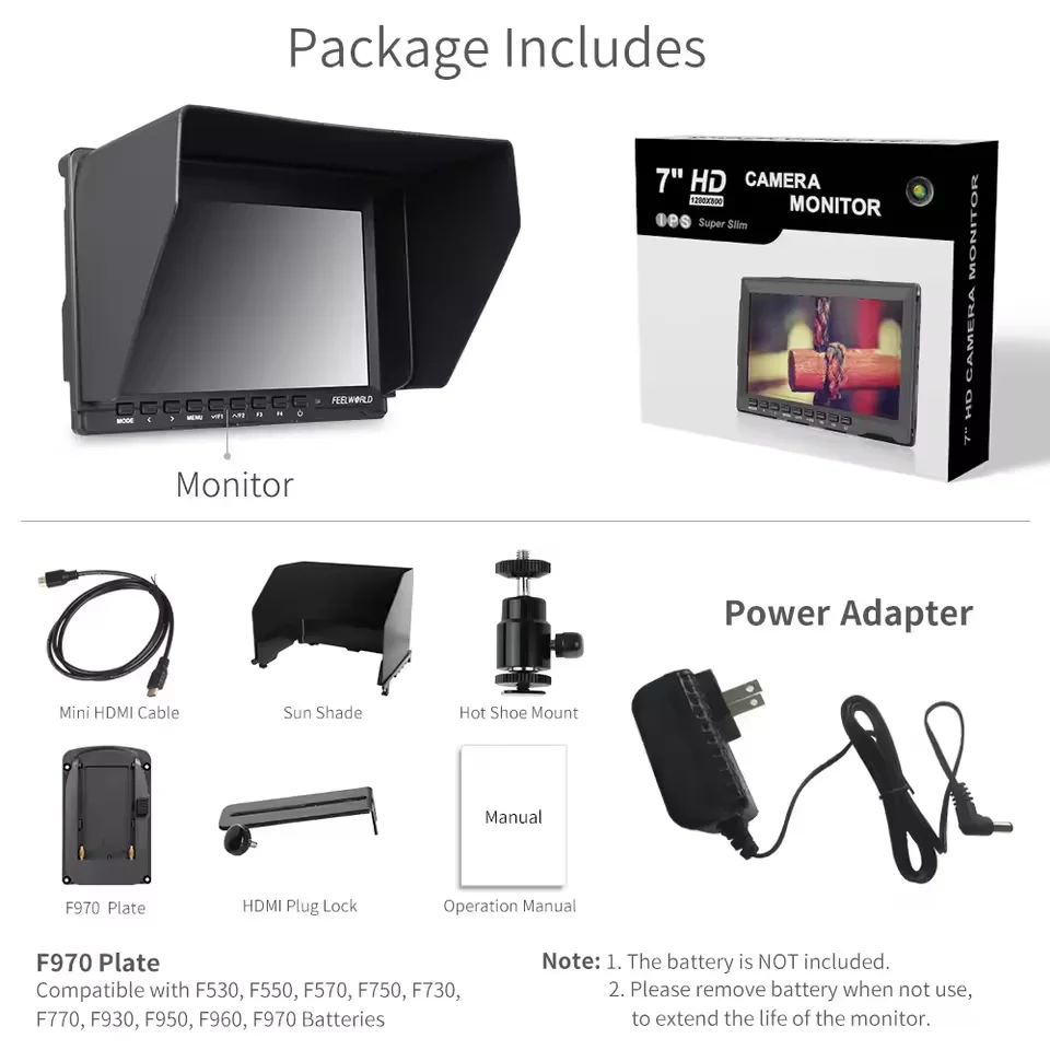휴대용 디자인: 300g에 불과한 초박형 및 경량의 Feelworld 7인치 필드 모니터는 이동 중에도 촬영할 수 있도록 설계되었습니다.