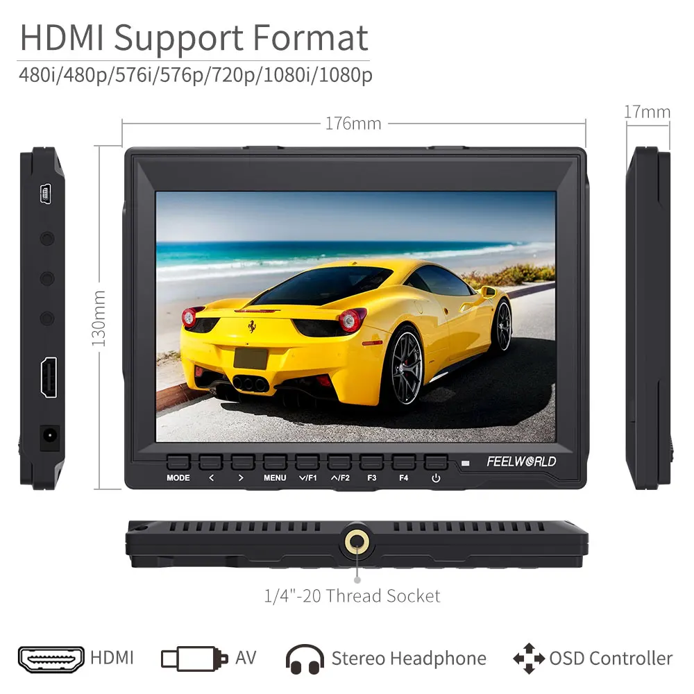 다중 입력: HDMI 및 AV를 지원하는 Feelworld fw759 7인치 모니터는 다양한 DSLR 및 캠코더와 호환됩니다.