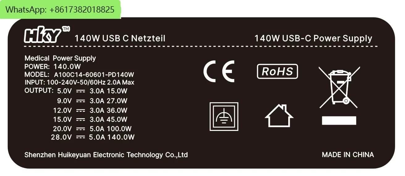 5V 3.6A, 9V 5A, 12V 5A, 15V 5A, 20V 5A, 28V5A 140W