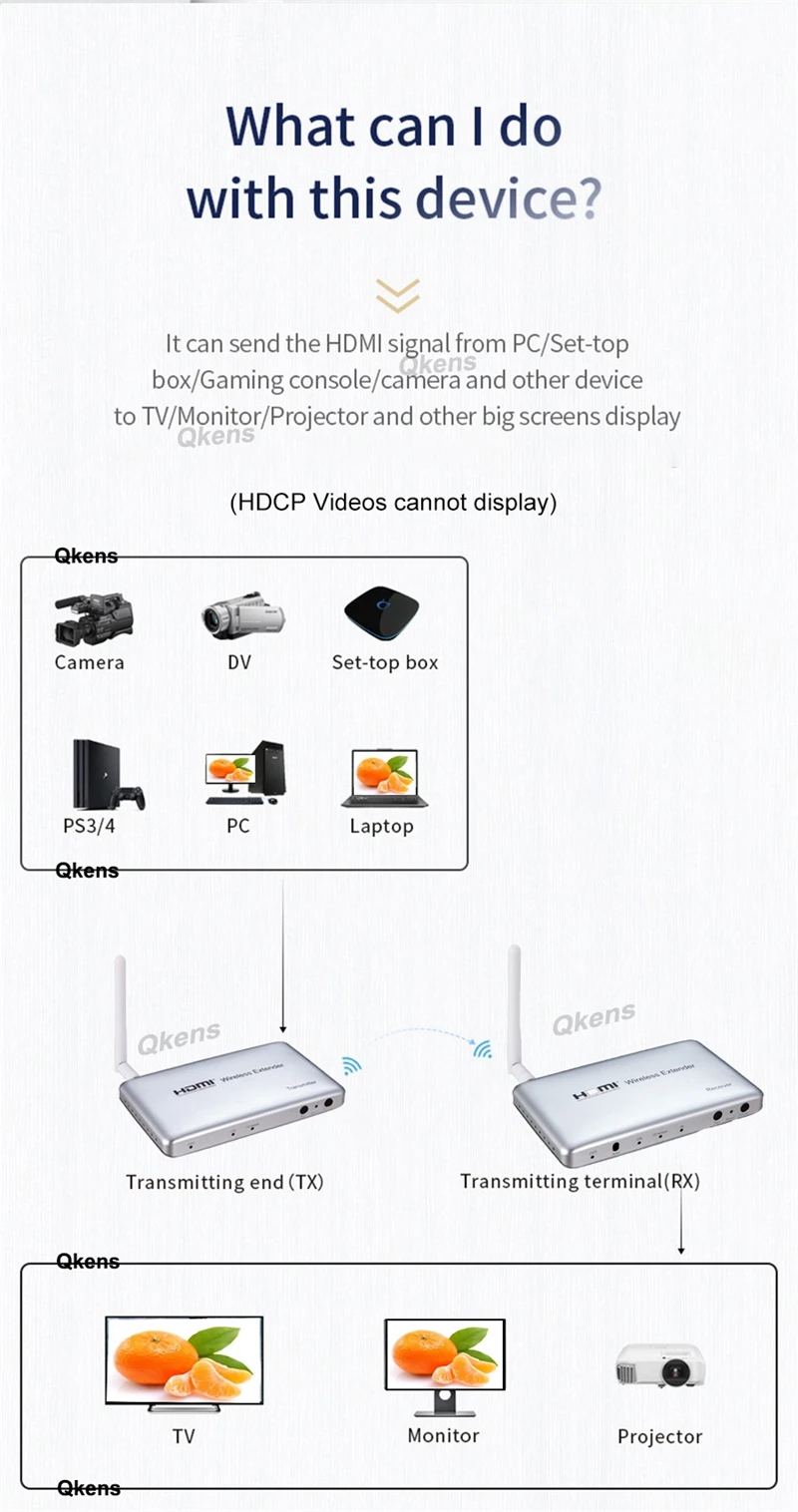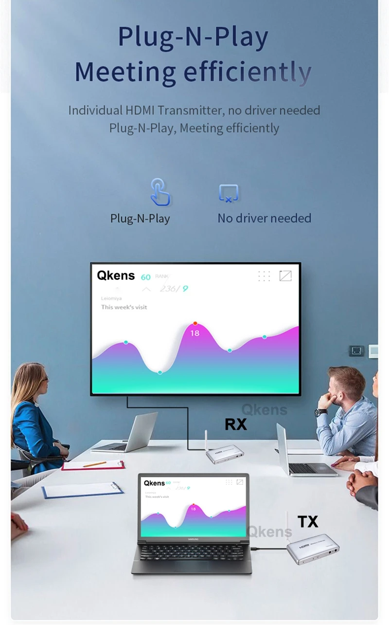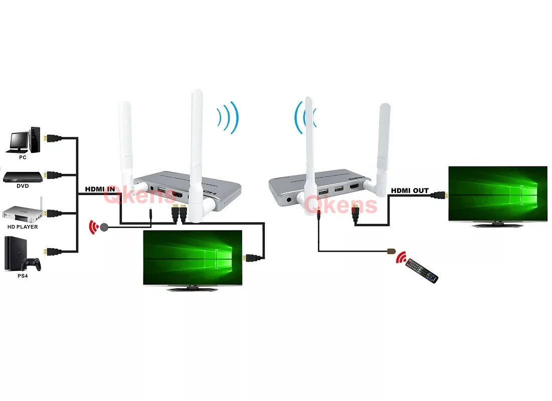 이 HDMI KVM 무선 확장기는 2.4G 및 5G 모듈을 사용하여 고속, 고성능을 지원합니다.