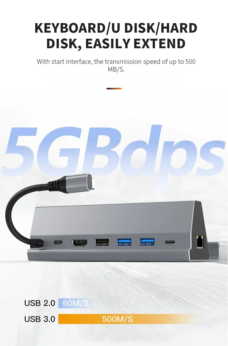 USBC PD+HDMI+USB 2.0+USB3.0 * 2+USBC 데이터(3.0)+RJ45