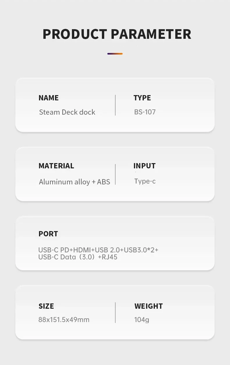 | Product name | 7 in 1 Type-C Steam Deck Docking Station |