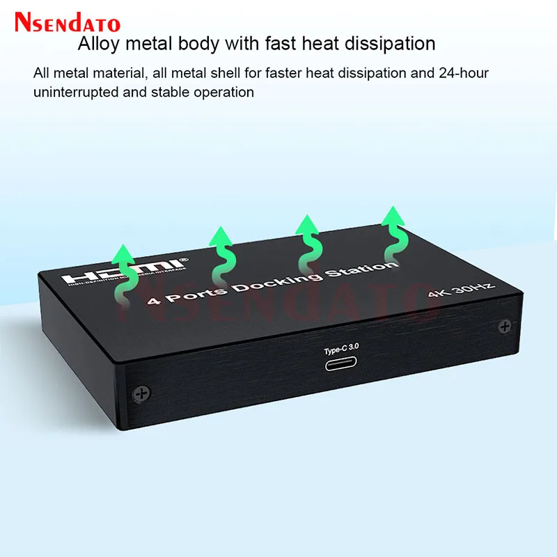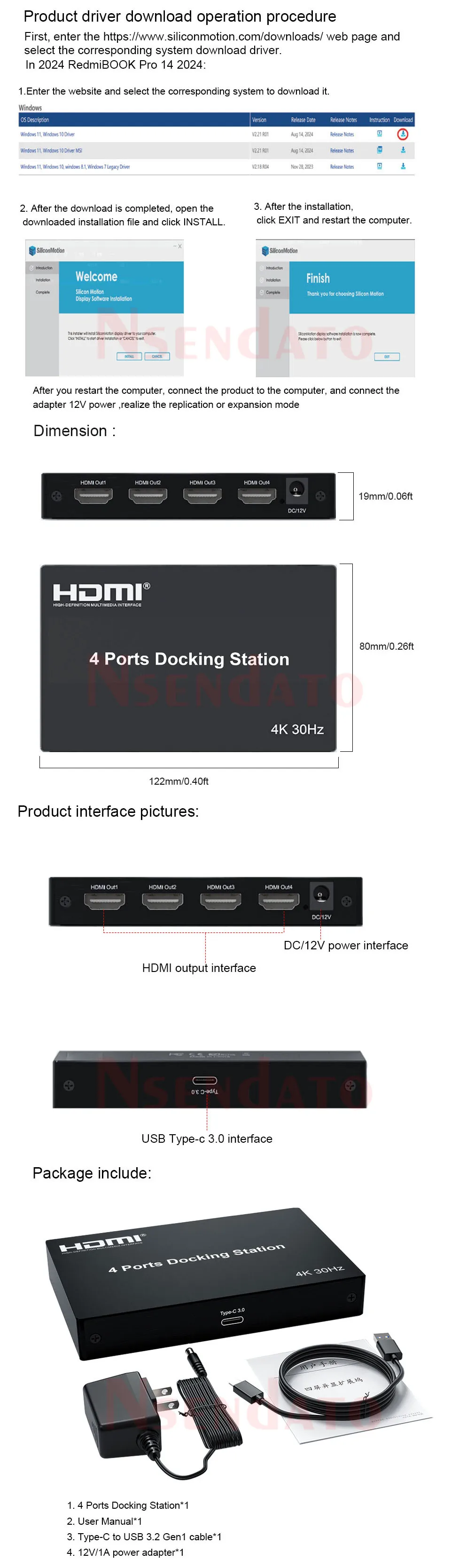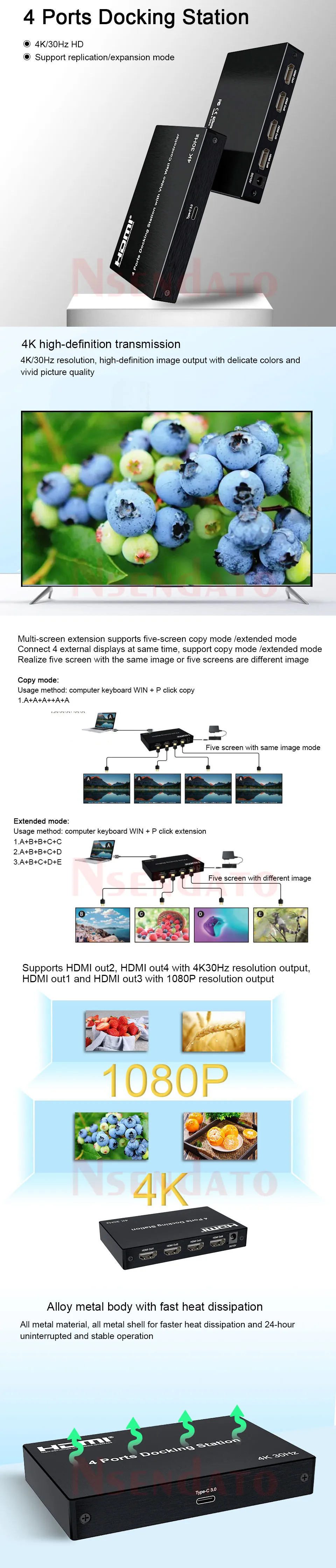 4 포트 도킹 스테이션 이 장치는 복사 모드 및 확장 모드를 지원합니다. 컴퓨터에 연결된 USB3.0 인터페이스를 통해 4 화면 동시 디스플레이로 복사하거나 4 화면 다른 디스플레이로 확장 할 수 있습니다. 노트북이나 데스크톱을 동시에 4 대형 화면 디스플레이를 확장하고 4 사진을 마음대로 전환 할 수 있습니다. 멀티 스크린 다른 디스플레이/동일한 화면, 두 배의 사무실 효율성.