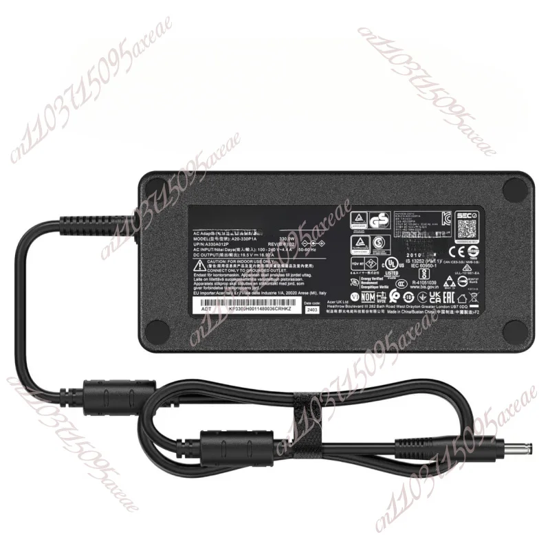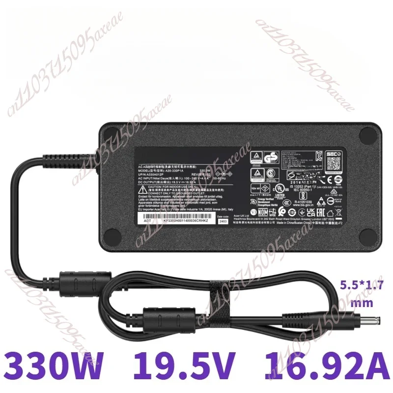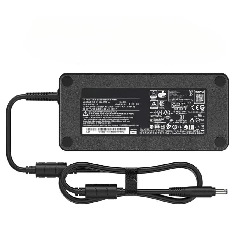 입력: 100240V AC~ 4.5A, 5060Hz (전 세계 사용 가능). 출력: 19.5V 16.92A, 전력: 330W. DC 핀 크기: 5.5x1.7mm. Acer호환 280w 19.5V 14.36A 노트북 충전기와 호환 가능