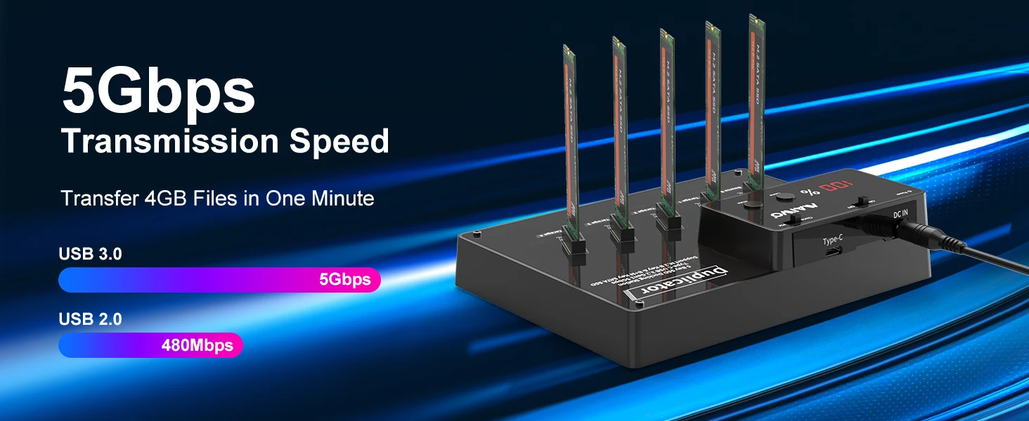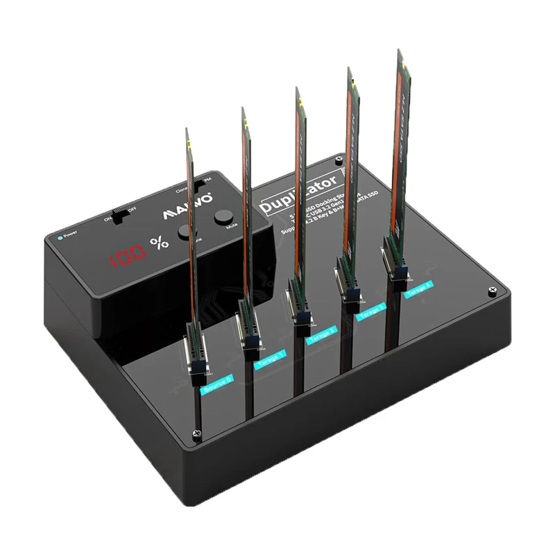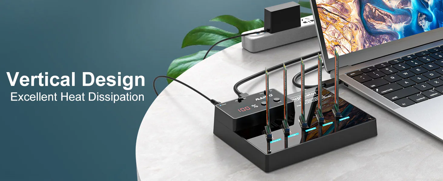 【오프라인 복제】이 외부 솔리드 스테이트 드라이브 도킹 스테이션은 5PCS M.2 NGFF SATA SSD를 동시에 읽고 쓸 수 있습니다.원키 오프라인 복제와 1대4 대량 복사를 지원하므로 복제 과정에서 컴퓨터에 연결할 필요가 없습니다.