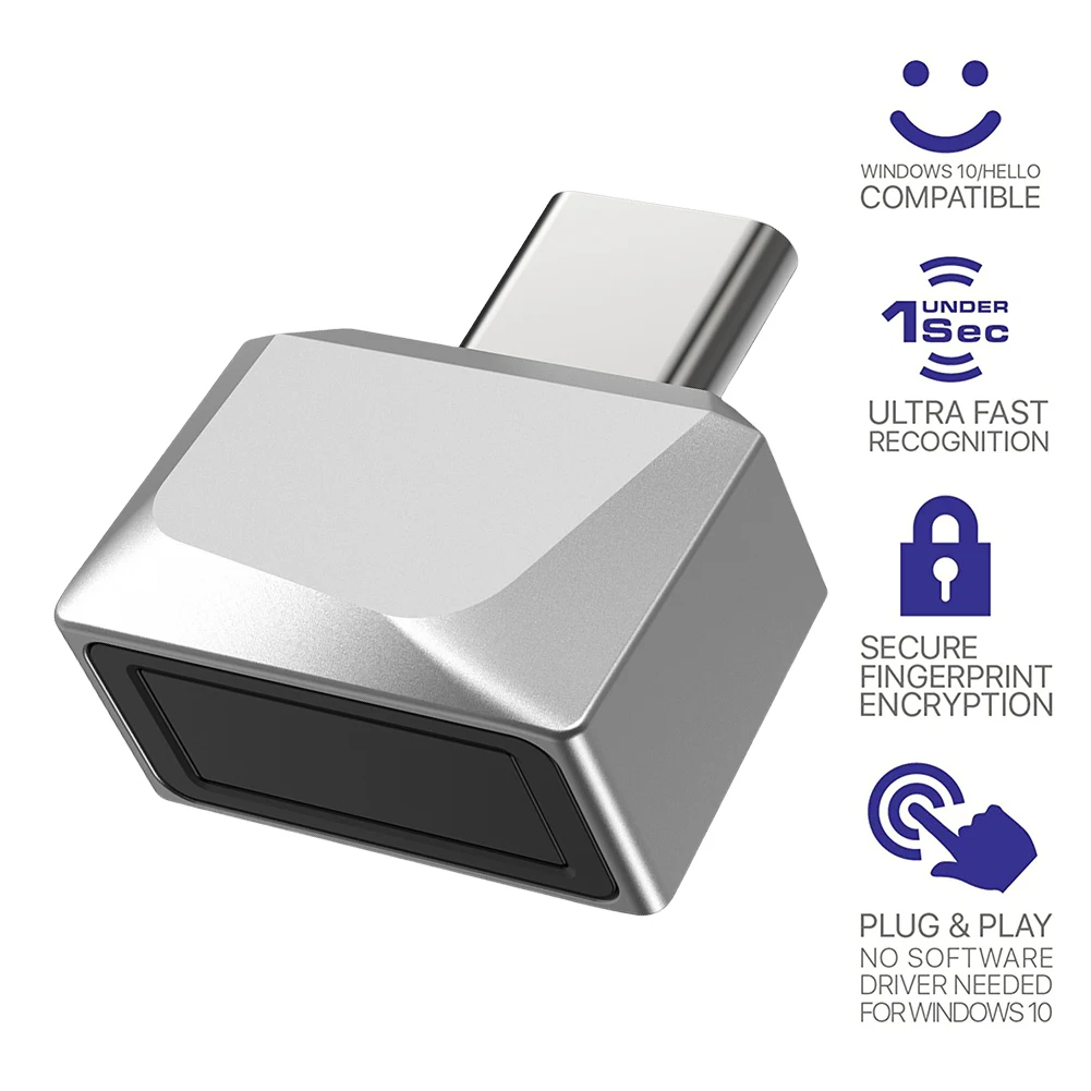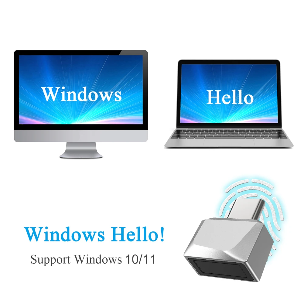 USB 지문 키 리더 생체 인식 지문 스캐너 안티 스푸핑 Windows Hello U2F 생체 인식 미니 보안 키 동글 360° Windows 11/10 Hello 데스크탑 노트북용 터치