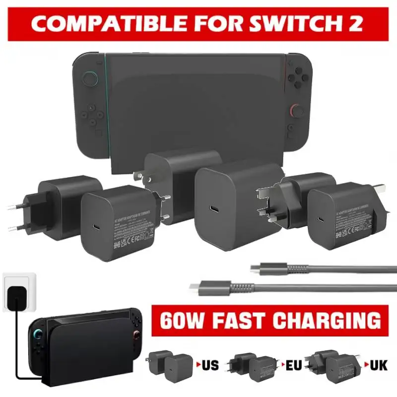 1.60W 고속 충전 기능:이 USB C 충전기는 최대 60W의 전력을 제공하므로 노트북, 태블릿 및 게임 장치에 이상적입니다.Nintendo Switch2, Steam Deck과 호환 가능,