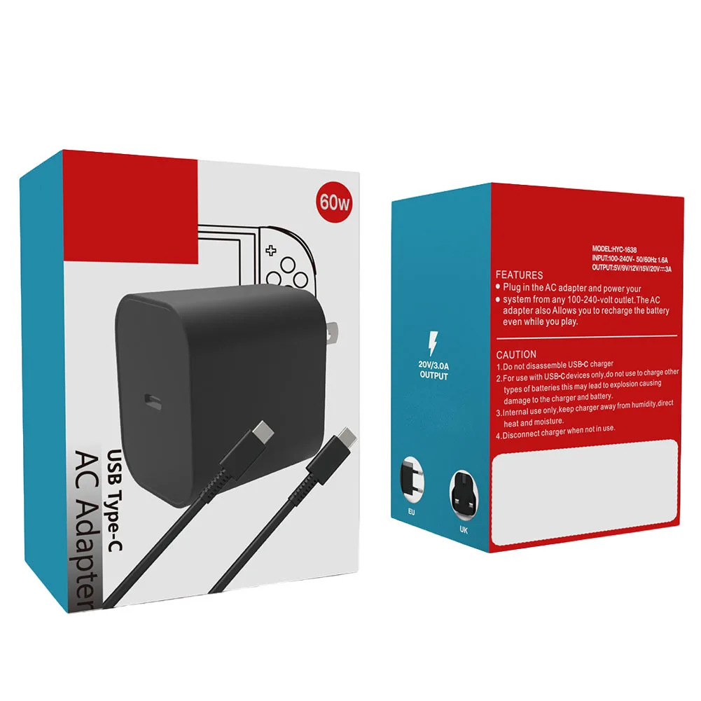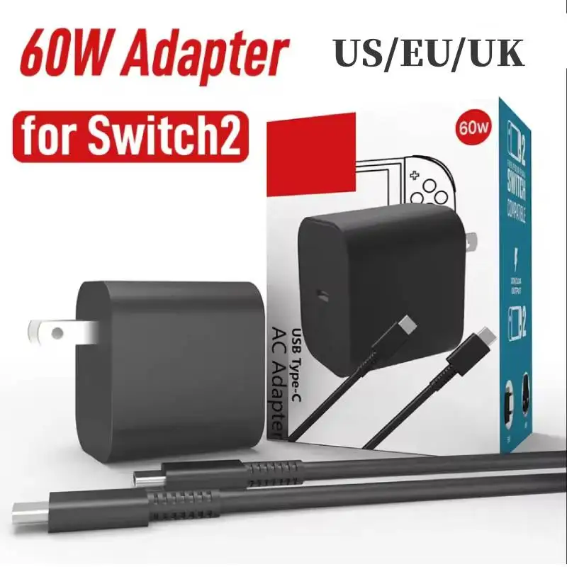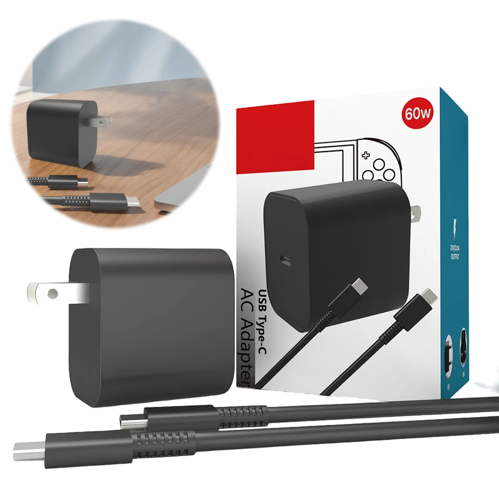 Nintendo Switch2 용 60W 충전기 AC POWER LOGIC 어댑터 충전기 스위치/OLED 용 USB C 케이블이있는 AC 어댑터 POWER LOGIC 공급 장치