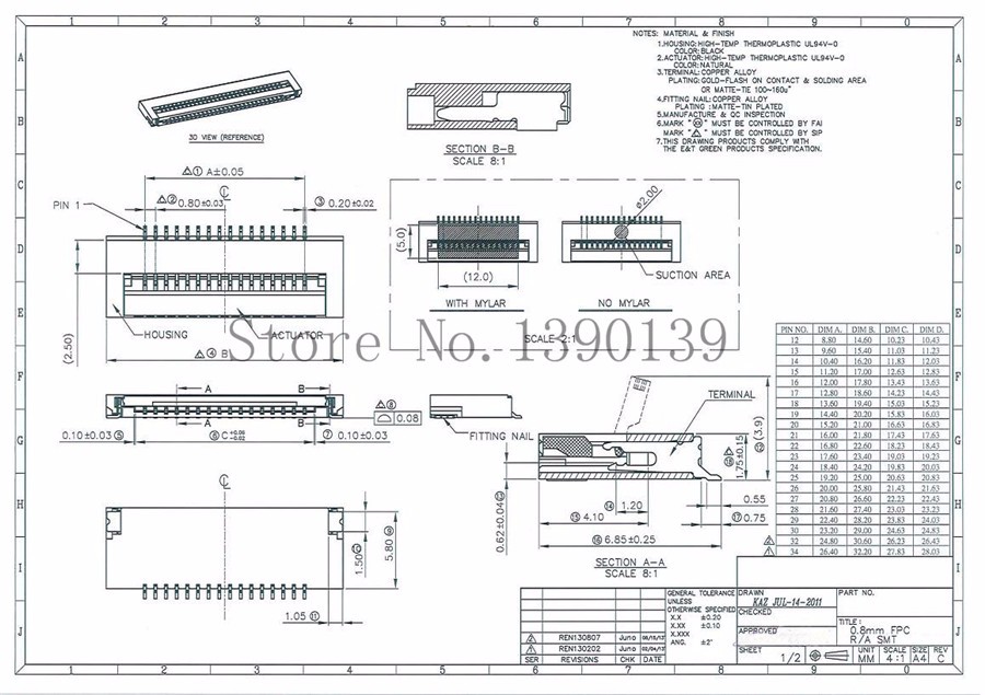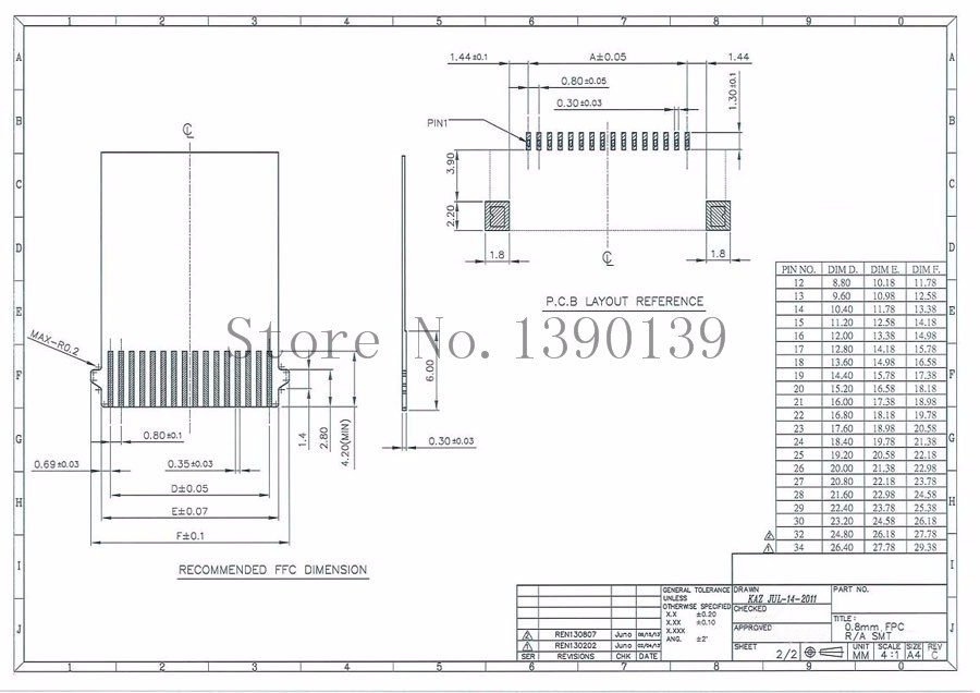 26Pin /30pin/32Pin/34Pin 의 케이블은 200 mm입니다.