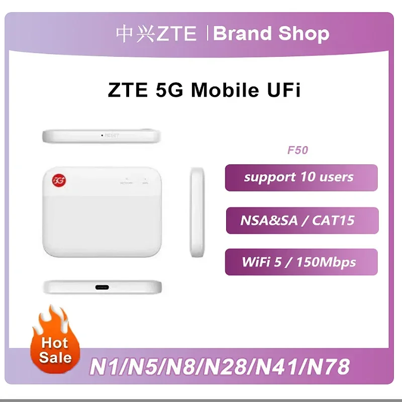ZTE F50의 뛰어난 기능 중 하나는 Sub6GHz 주파수 대역에서 작동하는 SA 및 NSA 네트워크 환경을 모두 지원한다는 것입니다.사용자는 DL 1.6Gbps 및 UL 225Mbps의 최고 속도를 즐길 수 있어 원활하고 빠른 인터넷 경험을 보장합니다.