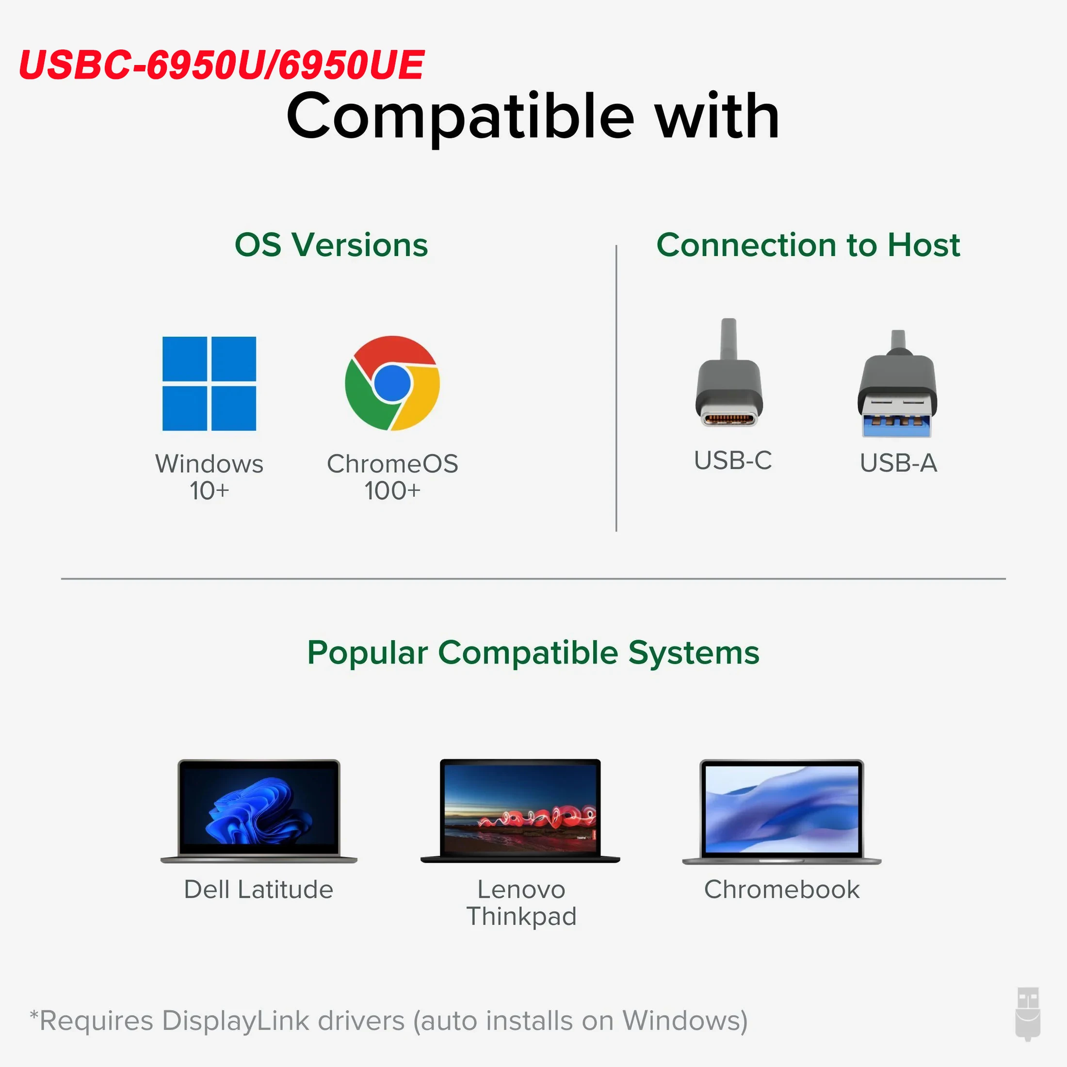 플러그형 USBC6950U 및 플러그형 USBC6950UE: Windows 및 ChromeOS와 호환됩니다.