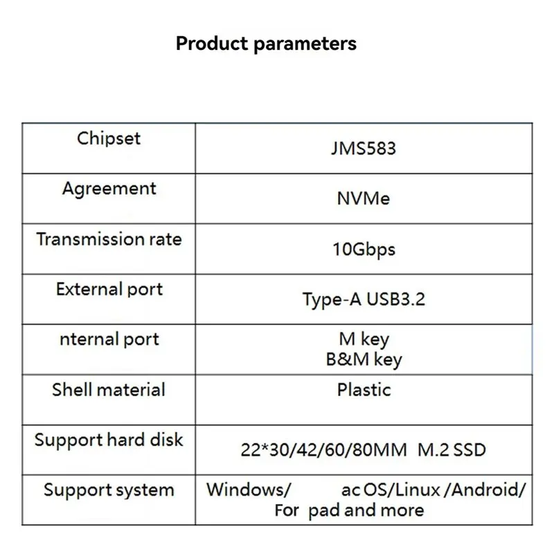 | Specification 5 | NVME SSD Case |