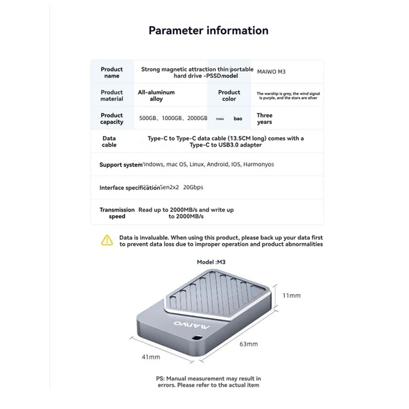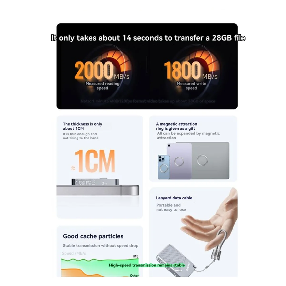 MAIWO M3 2000MB/S 휴대용 솔리드 스테이트 드라이브 노트북 PC 데이터 백업 1TB 용 견고한 SSD 방수 외부 휴대용 SSD