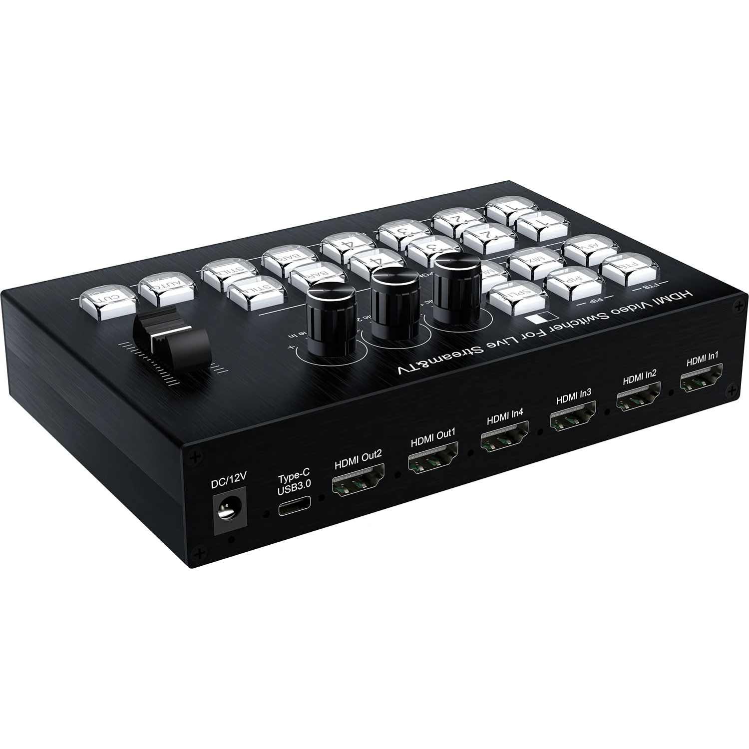 라이브 스트리밍용 비디오 스위처, 4개의 HDMI 입력은 4K@30Hz 해상도를 지원하고 HDCP1.4 표준을 지원합니다.