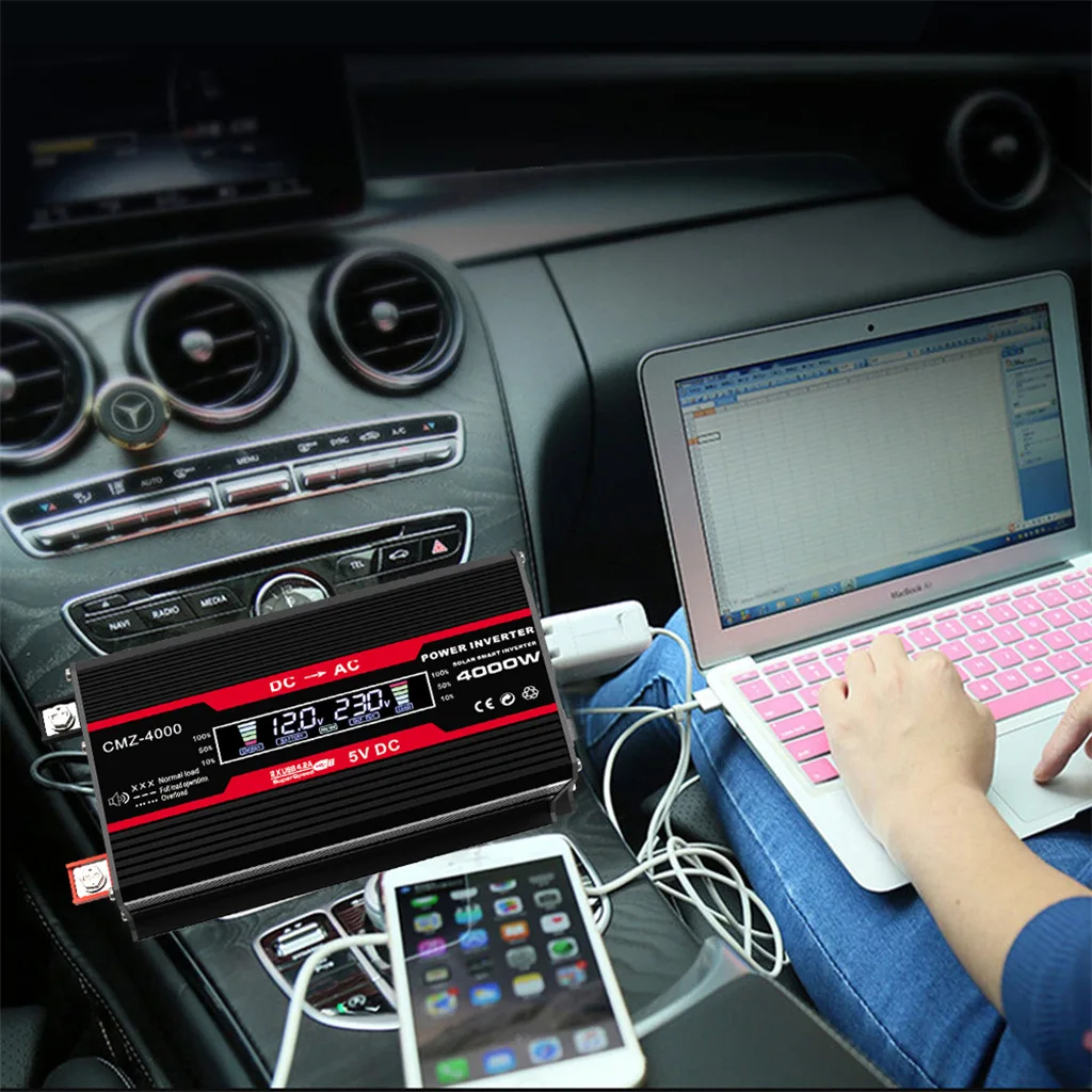 파워 인버터 듀얼 LCD 디지털 디스플레이 자동차 POWER LOGIC 인버터 전압 변압기 자동 증기선 액세서리 용 수정 사인파