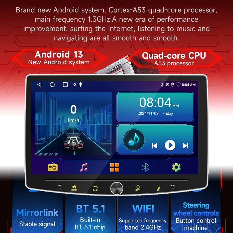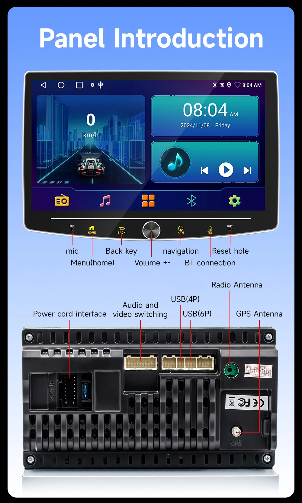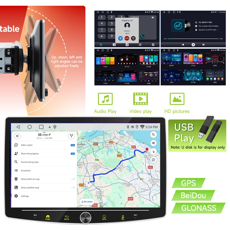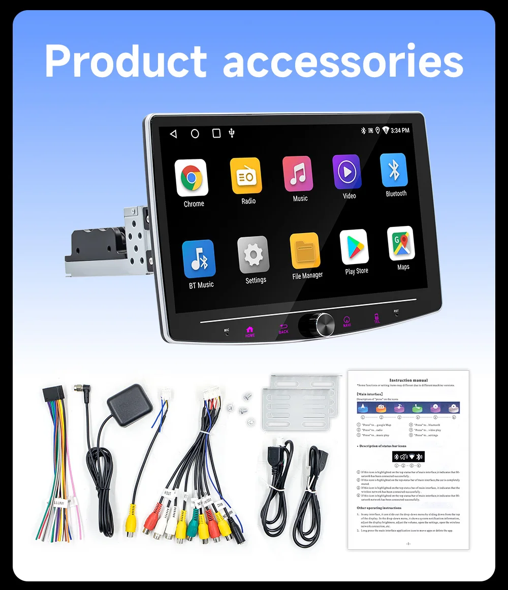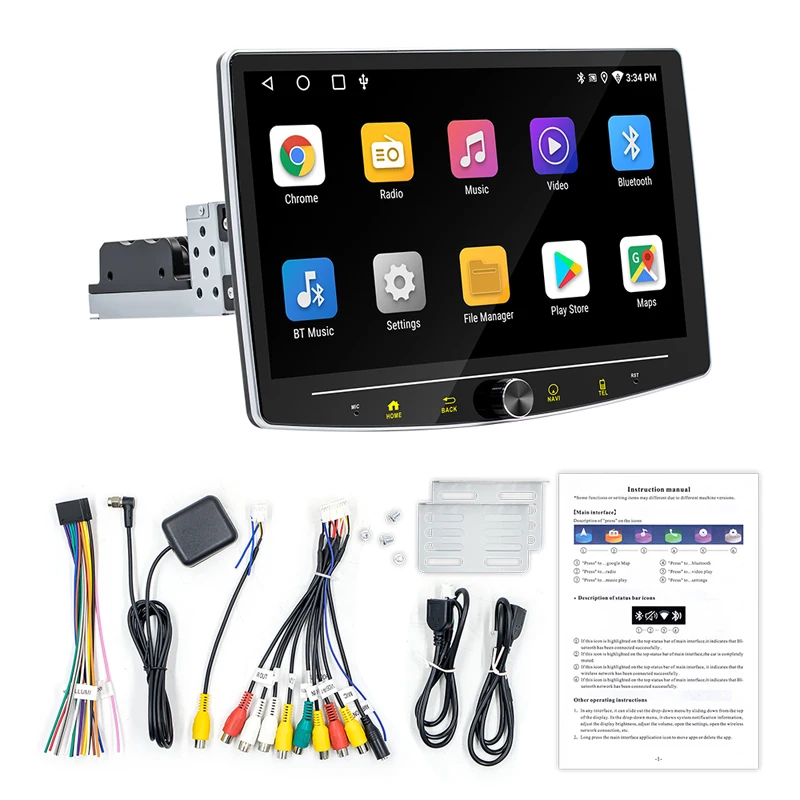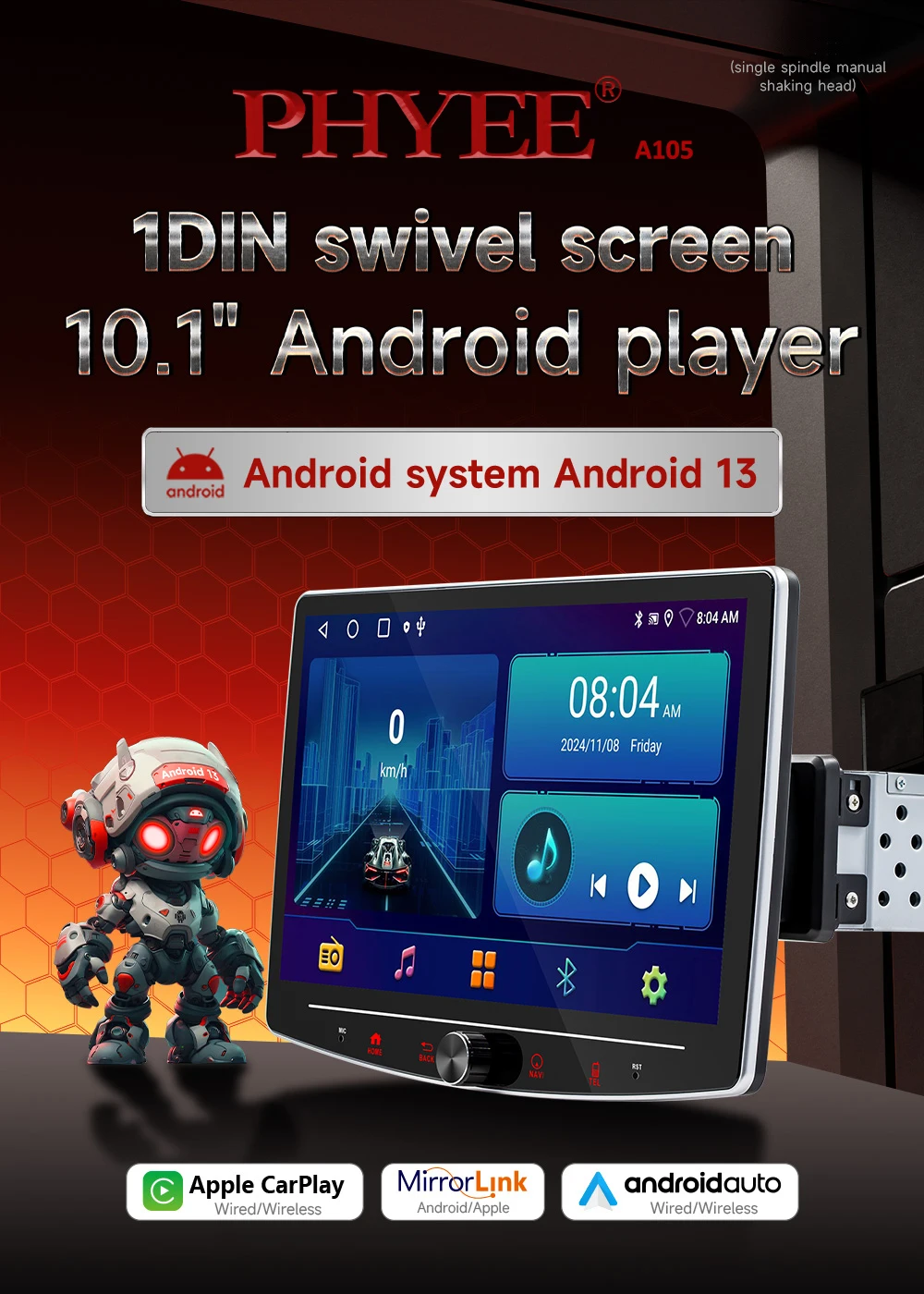 1딘 10.1인치 터치스크린 차량용 안드로이드 오디오 (GPS 내비게이션, 무선 카플레이, 안드로이드 오토, 블루투스 5.1, 와이파이, FM RDS, USB 지원)