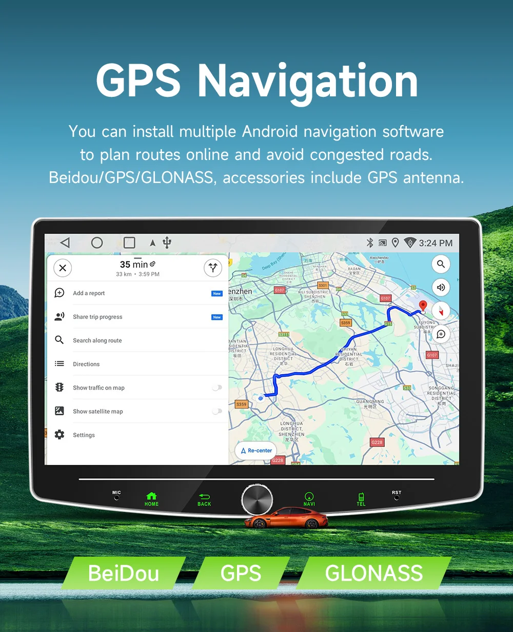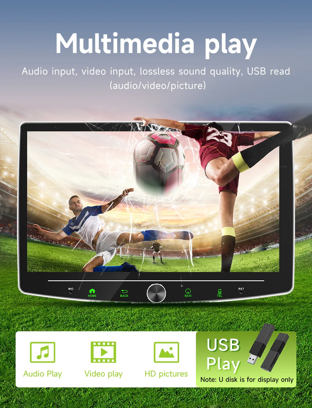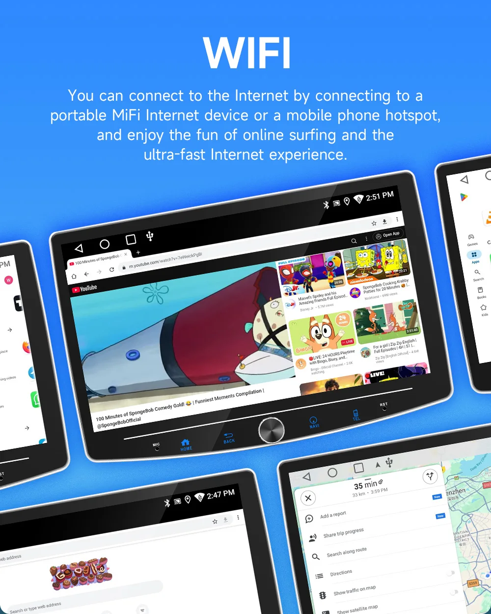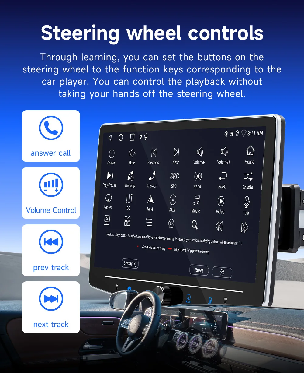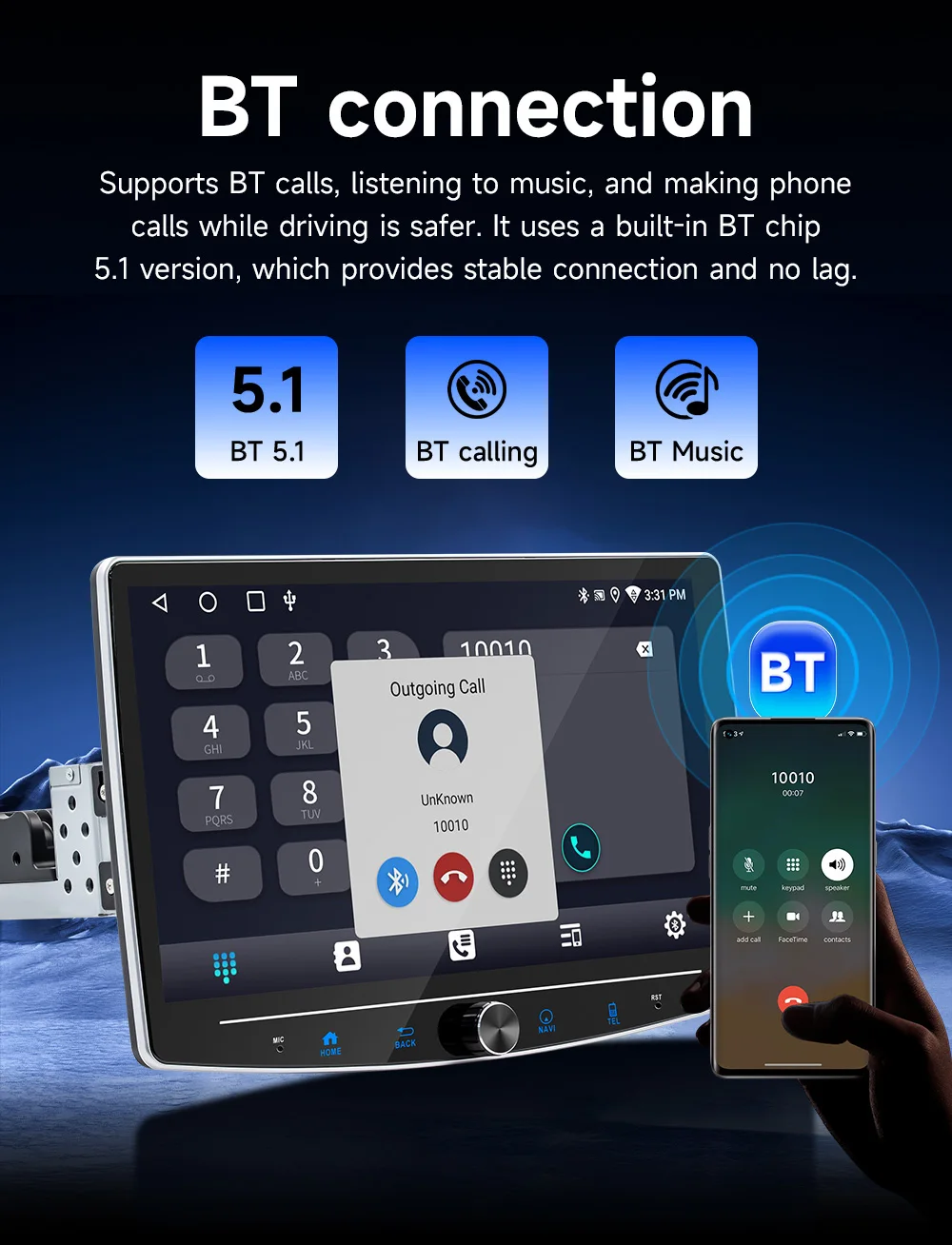 1딘 10.1인치 터치스크린 차량용 안드로이드 오디오 (GPS 내비게이션, 무선 카플레이, 안드로이드 오토, 블루투스 5.1, 와이파이, FM RDS, USB 지원)
