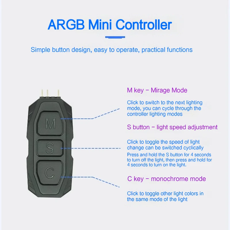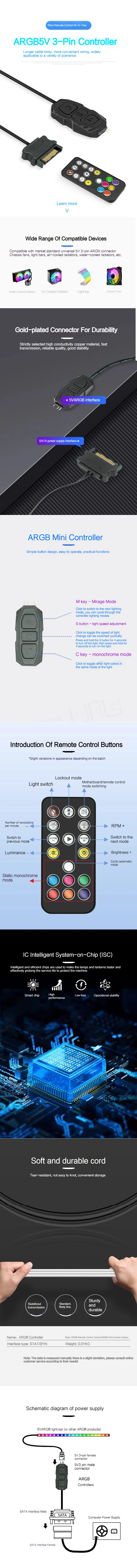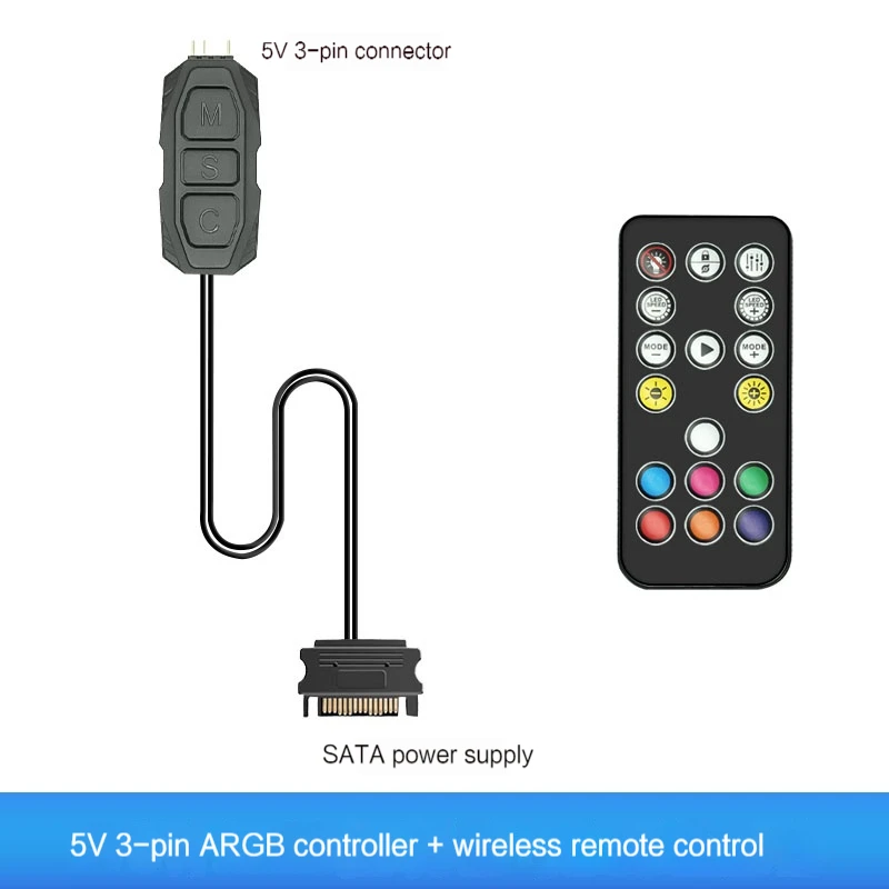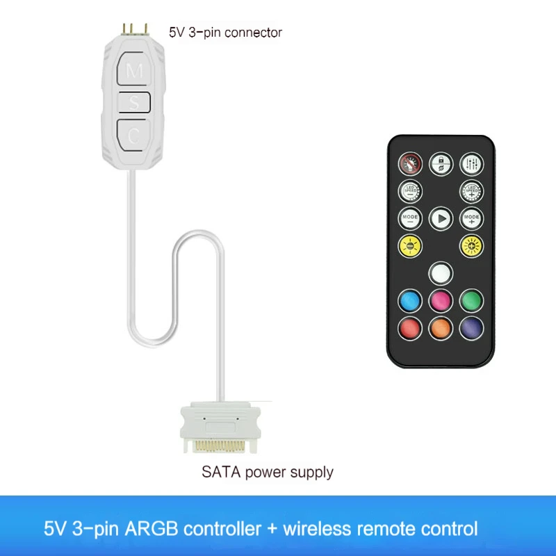 COOLCIRC ARGB 컨트롤러 5V 3핀SATA POWER LOGIC RGB CPU 라디에이터 허브 컴퓨터 LED 3핀 조명 미니 장치