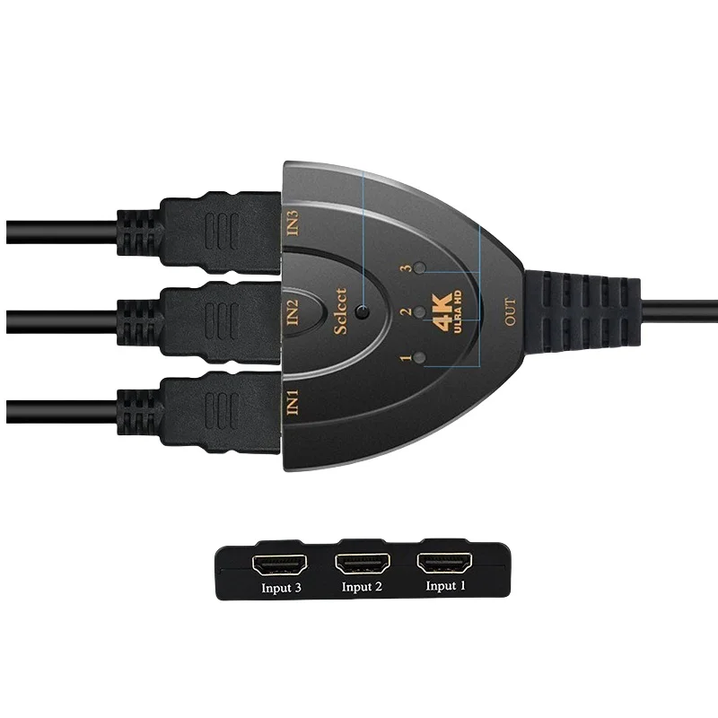 이 3입력 1출력 HD 스위처는 키 누르기 전환 기능과 지능형 기능을 갖추고 있습니다.3개 입력1개 출력 HDMI 호환 스위처는 3개 소스 중 하나에서 디스플레이 장치로 고화질 4K*2K 비디오 및 디지털 오디오를 라우팅합니다.3개의 입력은 HD 플레이어, Bluray 플레이어, 셋톱박스, PS3용, Xbox360용 등과 같은 고화질 비디오 소스의 동시 연결을 수용합니다.출력은 고화질 오디오/비디오 신호를 HDTV와 같은 고화질 디스플레이로 보냅니다.