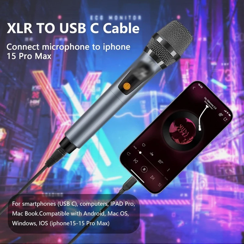 ??【전문적인 연결성】 USB TypeC - XLR 마이크 케이블은 전문가급 오디오 녹음을 위해 제작되었으며 음악 제작, 노래방 및 홈 오디오 설정에 이상적입니다.3핀 XLR 포트가 장착된 마이크를 USB TypeC 포트가 장착된 컴퓨터나 스마트폰에 원활하게 연결하여 고음질 디지털 음악 녹음을 용이하게 합니다.