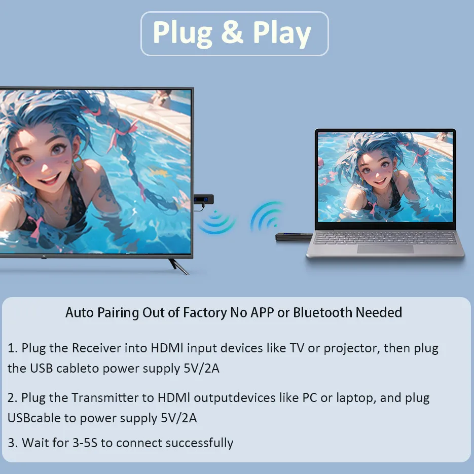 2.내장된 무선 전송 프로토콜을 통한 HDMI 비디오 및 오디오 전송, WiFi나 인터넷이 필요하지 않습니다.