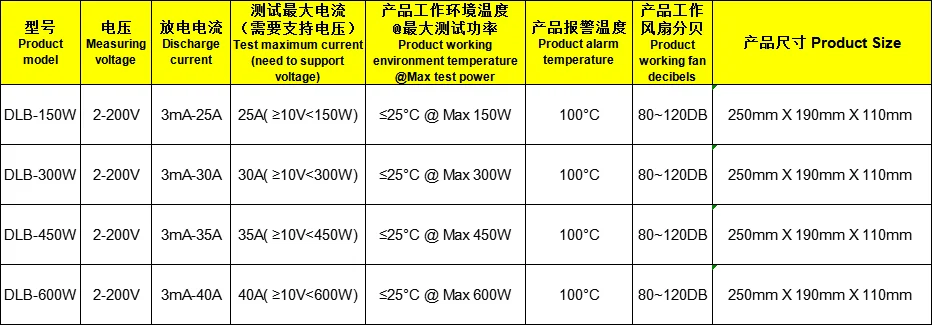 참고: 방전 전류는 최대 전력에 의해 제한되며, 200V 이상에서는 3A 미만, 15V에서는 40A 미만입니다.