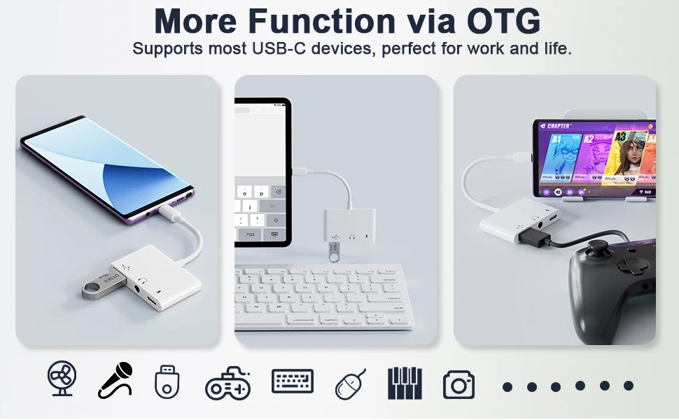 효율적인 3in1 USB C 어댑터 ? OTG, 오디오 및 고속 충전