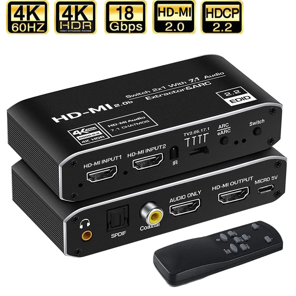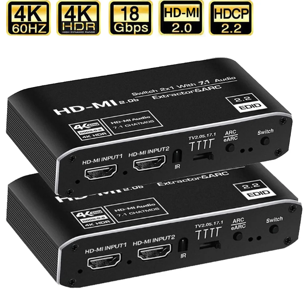 2x1 4K 120Hz HDMI 호환 2.0 스위치 eARC 오디오 추출기는 고성능 2