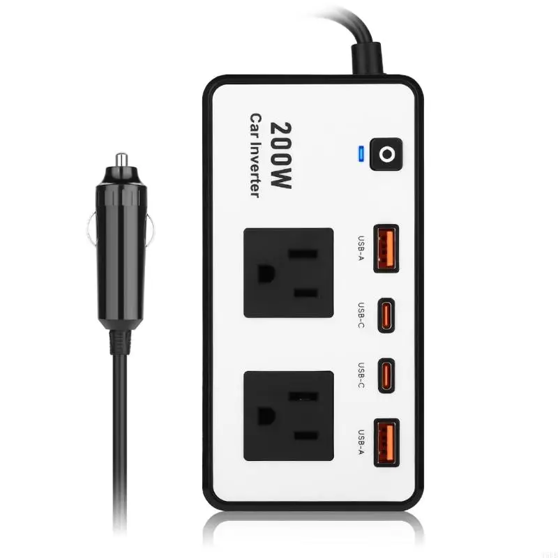 200W 차량용 전력 인버터는 DC12V를 AC110V로 효율적으로 변환하며, 여러 장치를 동시에 빠르게 충전할 수 있는 이중 USB 포트와 콘센트를 갖추고 있어 도로 여행 및 차량 전력 요구 사항에 필수적인 도구입니다.