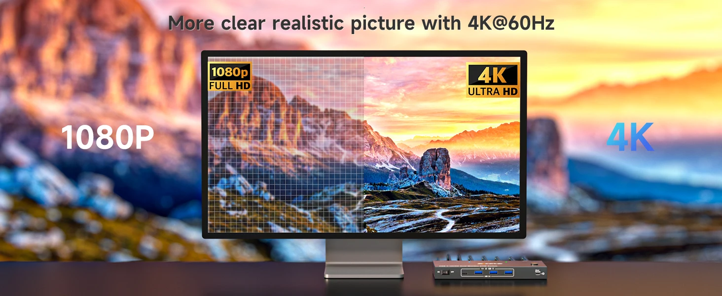 【울트라 HD 4K 시각 효과】듀얼 모니터 KVM 스위치는 최대 4K@60Hz를 지원합니다.2K@144Hz 해상도이며 2K@120Hz, 2560x1440@120Hz/60Hz와 역호환됩니다.,USB C KVM 스위치 2 모니터는 초고화질 이미지 품질을 제공하여 눈을 즐겁게 합니다. 참고: 더 나은 디스플레이 성능을 얻으려면 고품질 케이블을 사용하십시오.