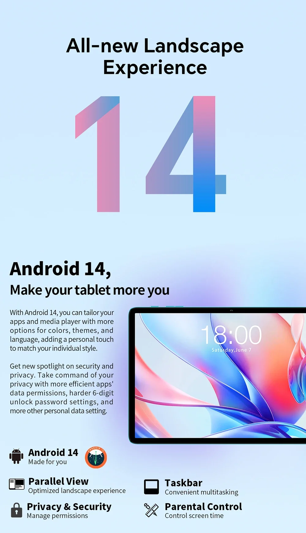 운영 체제: 글로벌 버전, Android 14, 다중 언어 지원