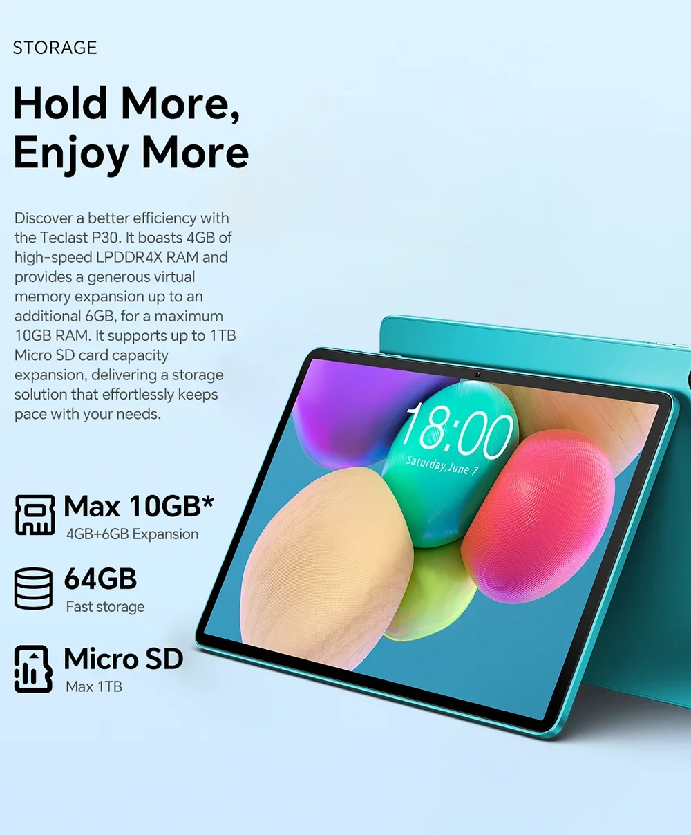RAM+ROM: 10GB(4GB+6GB) RAM/64GB ROM